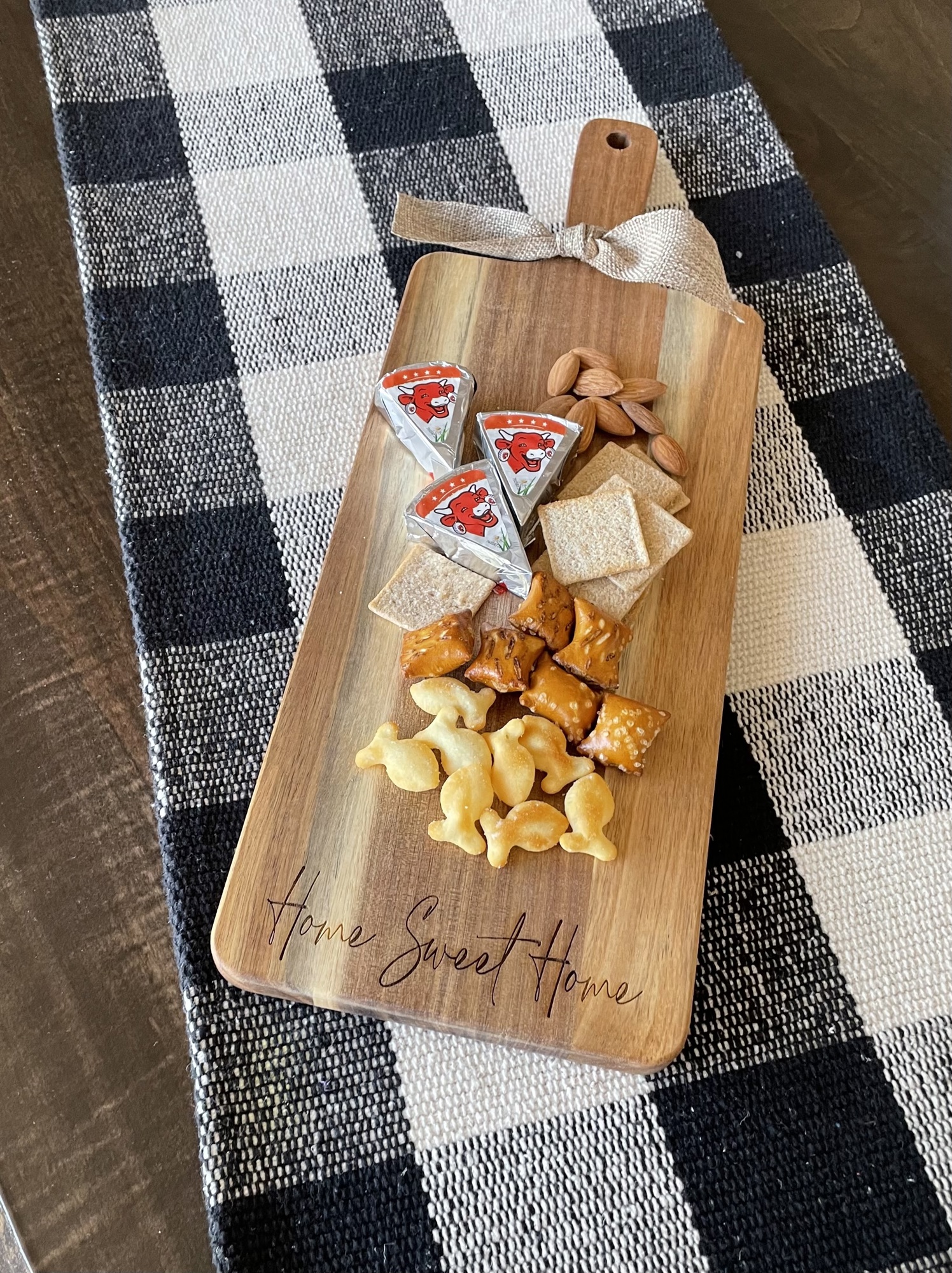 A personalized charcuterie board designed to help you as a Realtor leave a lasting impression long after the keys are handed over. laser-engraved with their name or home sweet home. This board turns a closing gift into a keepsake clients actually use—and remember.