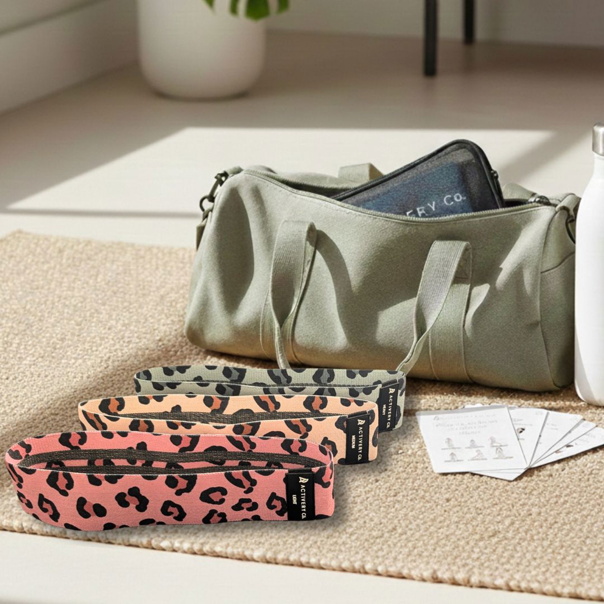Leopard Print Fabric Resistance Bands – 3-Piece Non-Slip Workout Set