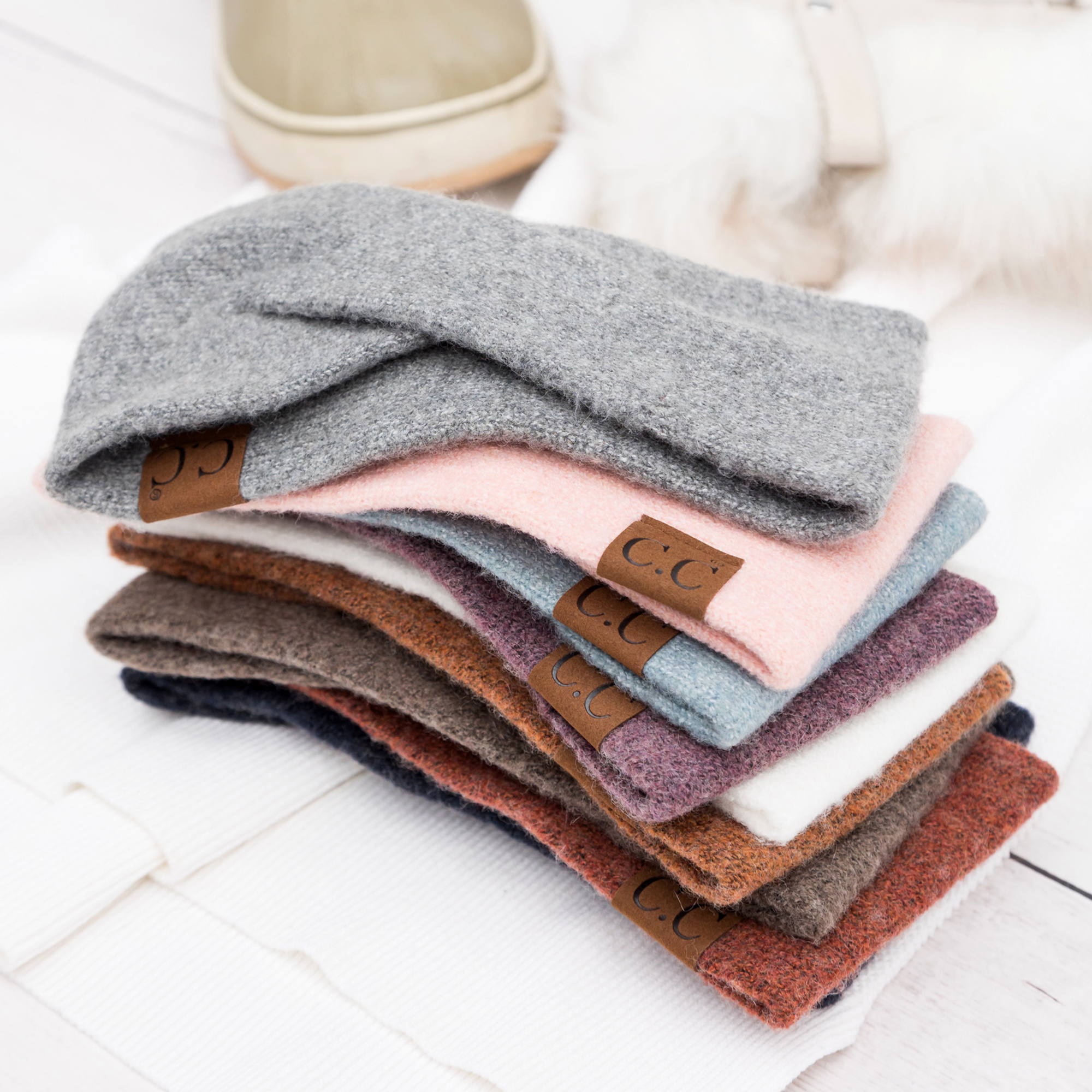 The C.C® Lux Headwrap. Cashmere blended for the softest feel, this headwrap is unlike any you've tried. A unique twist detail in front will finish off all your cold weather looks!