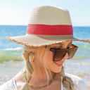 Stay covered with our Fray Edge Color Block Panama Hats! Bold stripes and bright colors will give endless styling options!