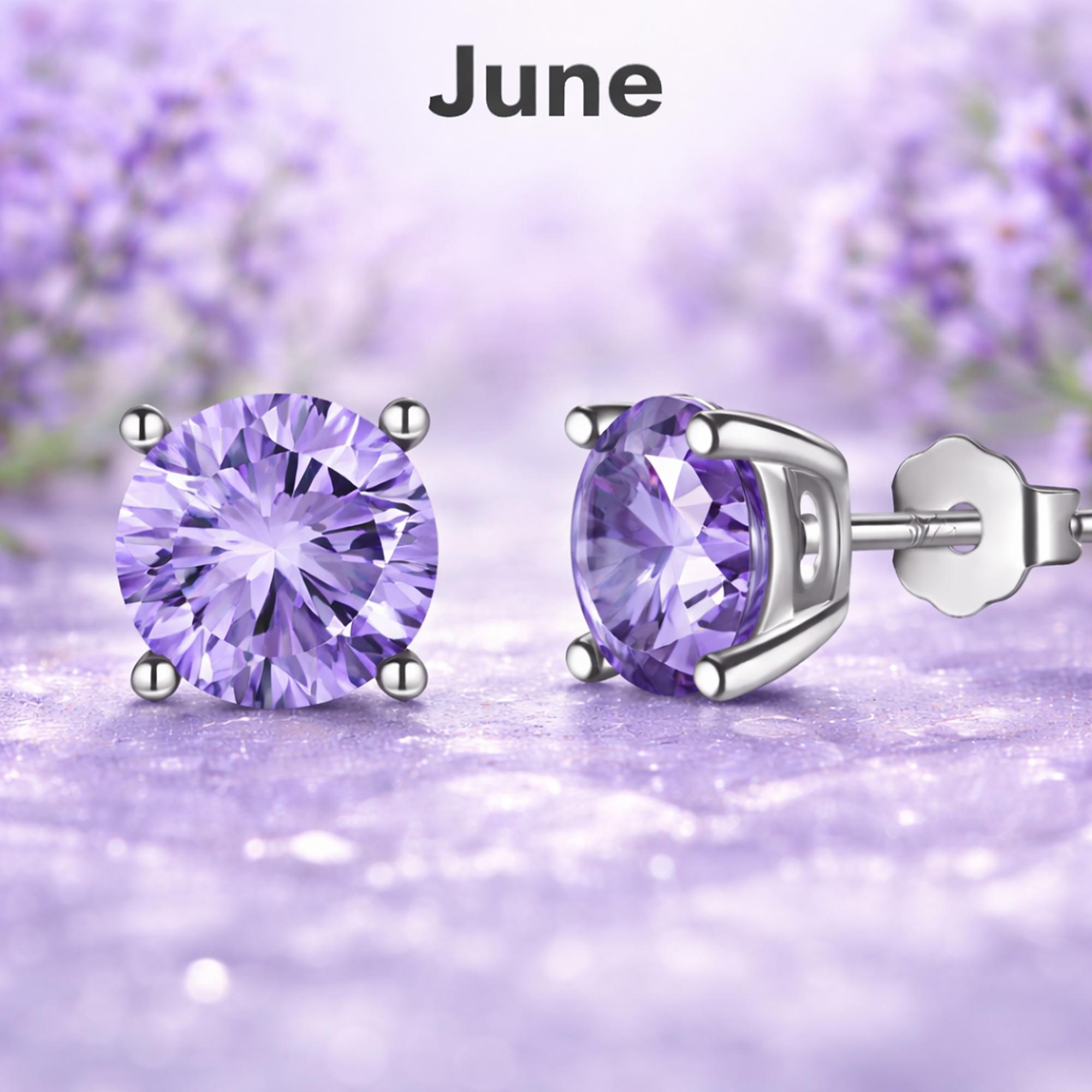 Sterling Silver 6mm CZ Birthstone Stud Earrings