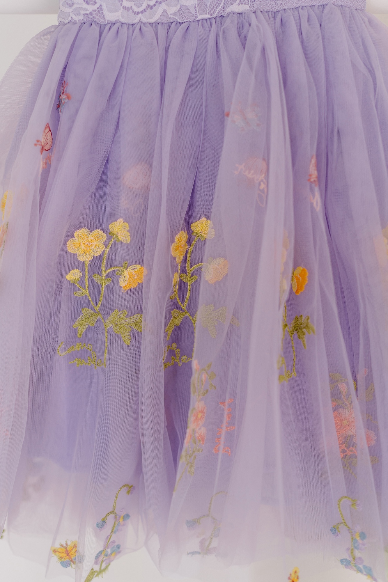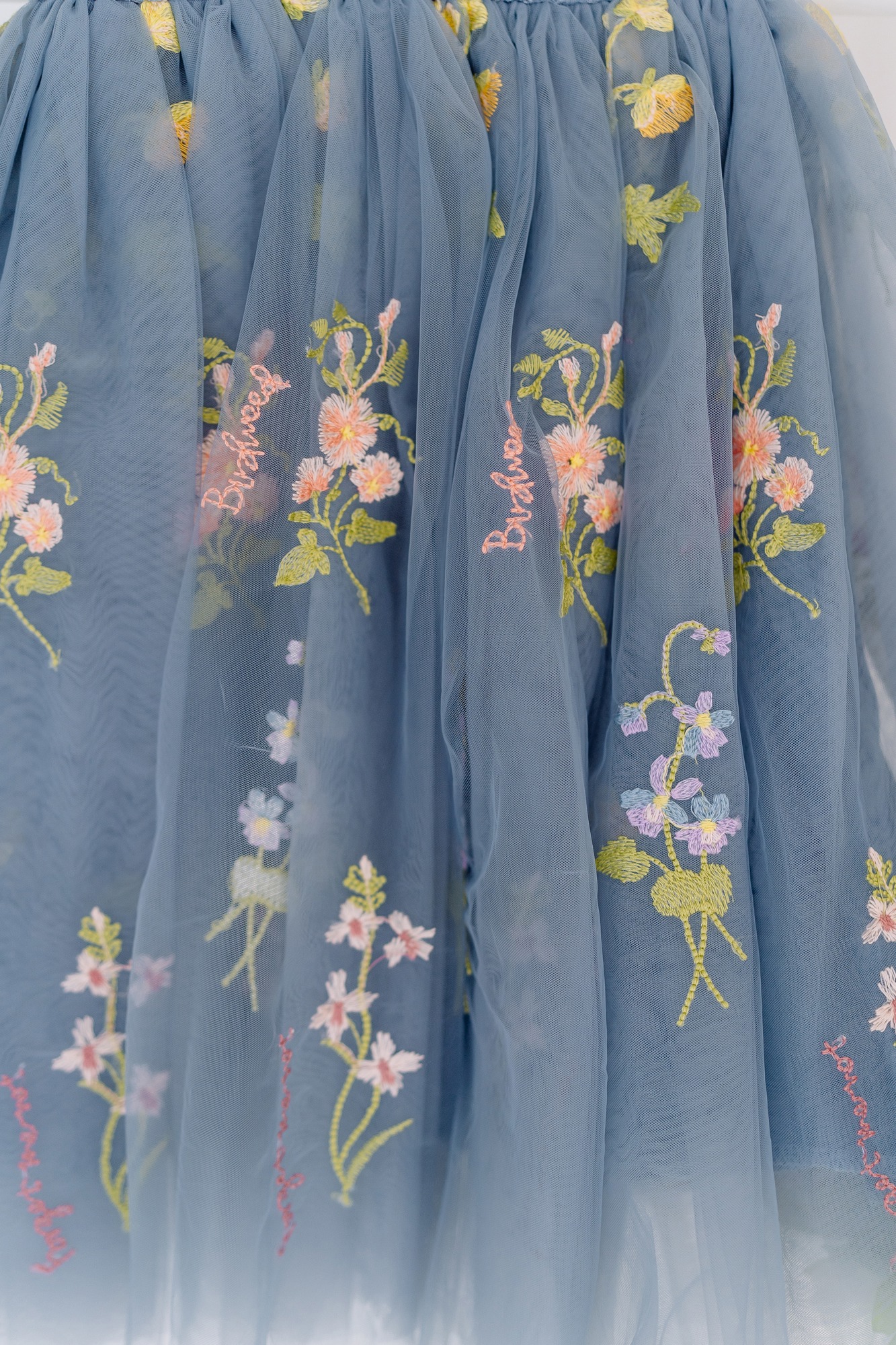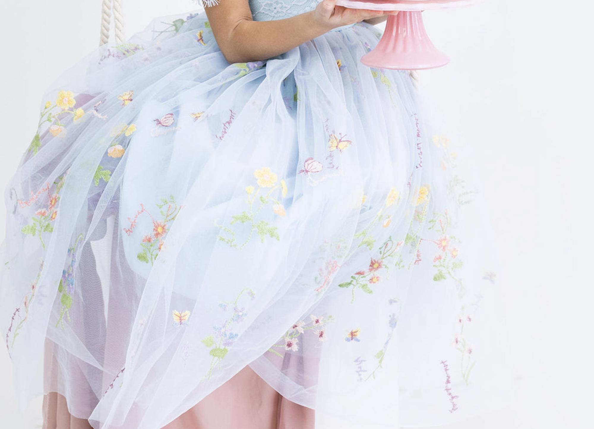 Whimsical embroidered tulle dress inspired by wildflowers — designed to feel magical for any special moment.