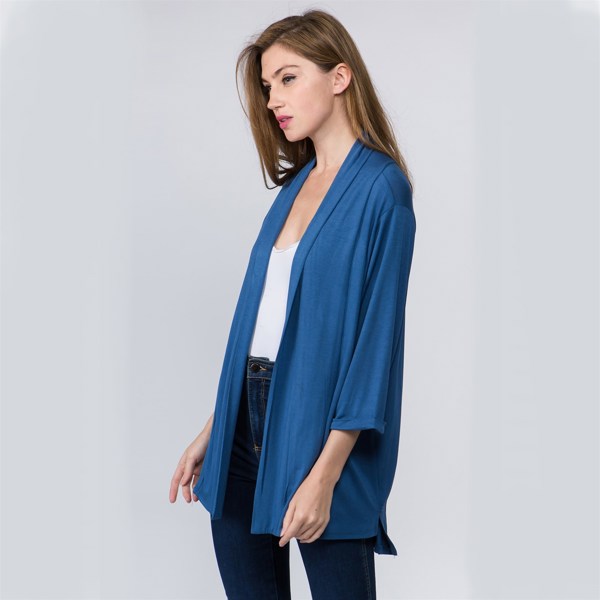 Very lightweight and will be perfect as a summer office topper. Beautiful blue color.