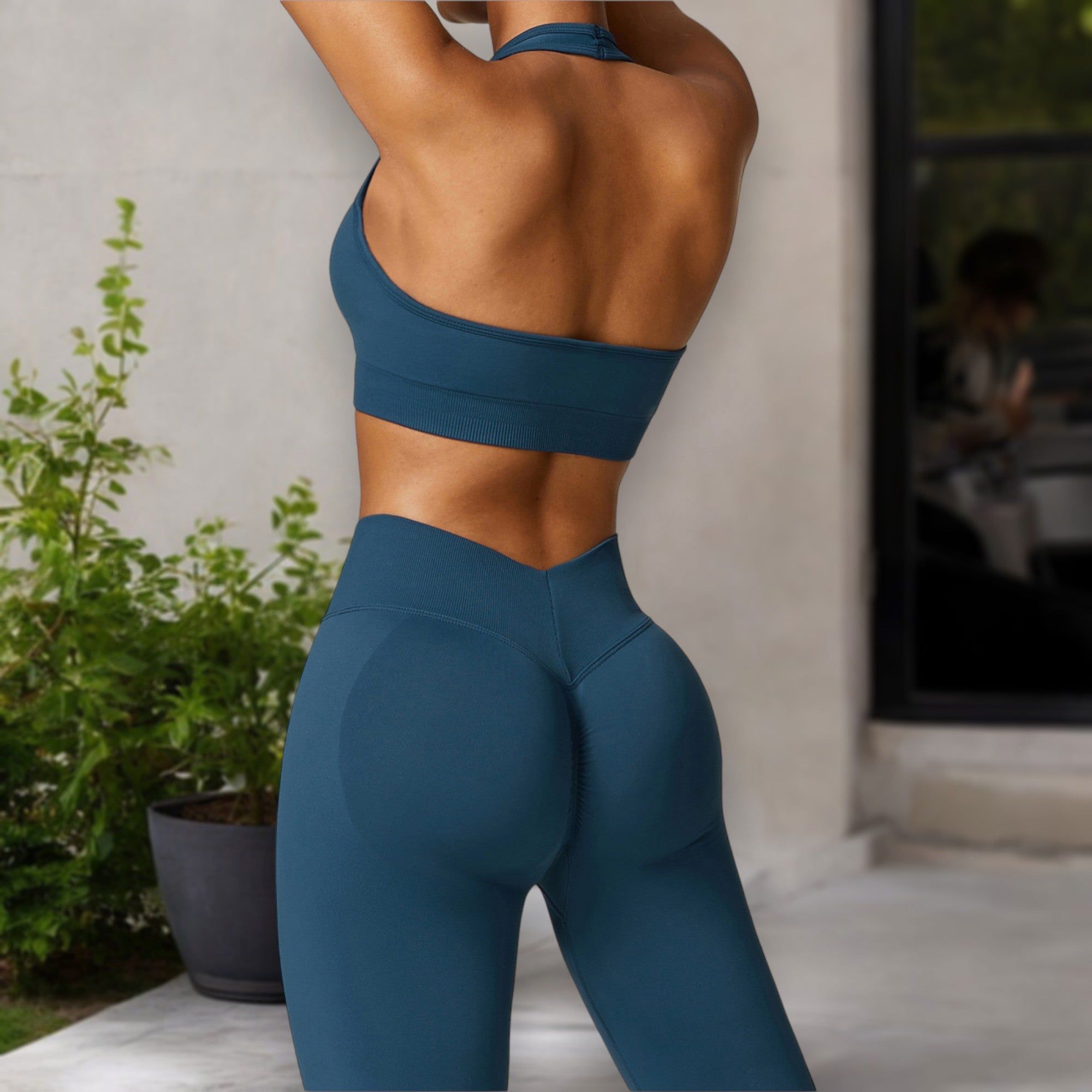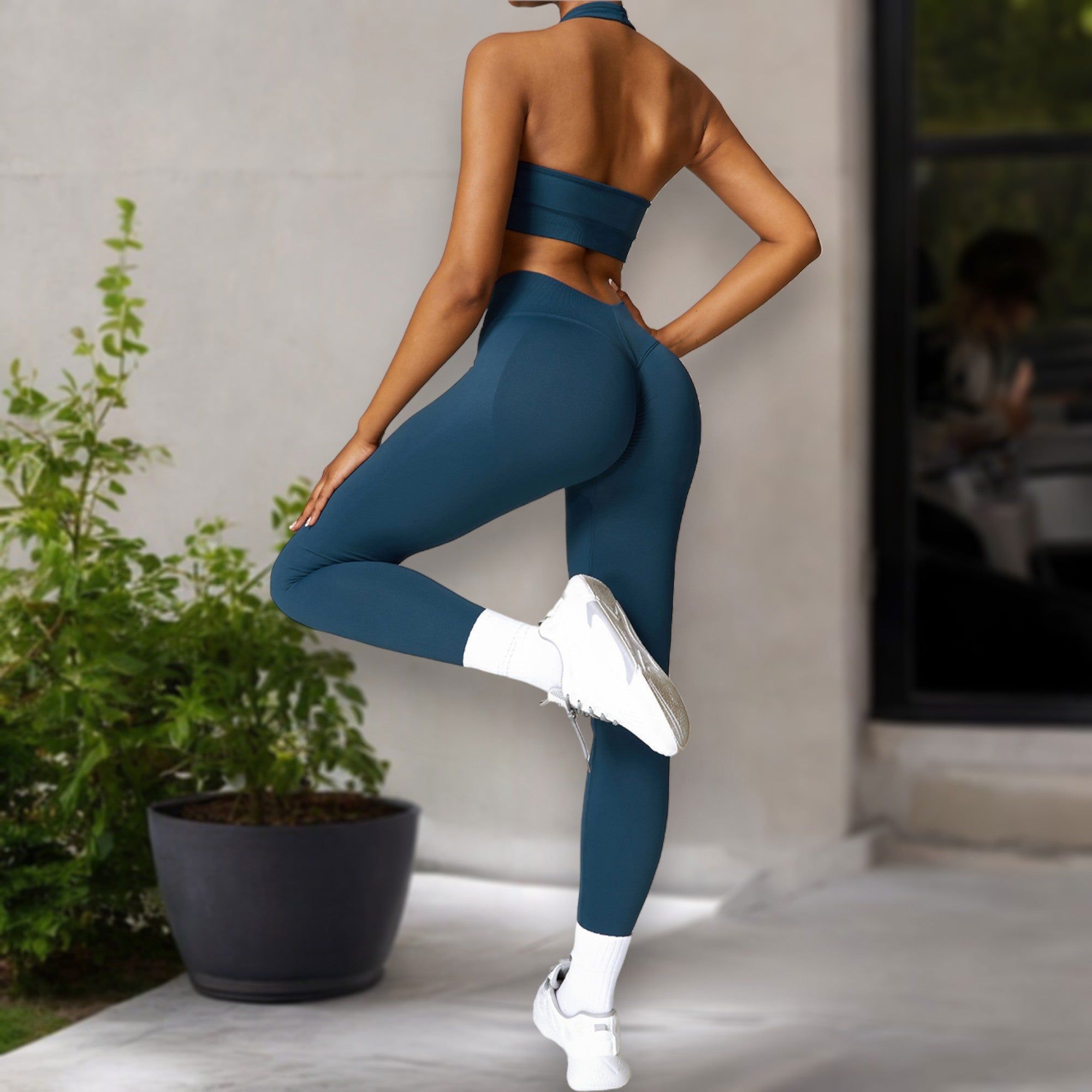 Women's Halter Neck Sports Bra with Elastic Band and V-Neckline is a stylish and functional addition to your Womens Activewear collection. Made from soft, stretchy fabric, this sports bra features a flattering V-neckline and a halter neck design that provides excellent support and freedom of movement. The elastic band ensures a secure and comfortable fit, making it perfect for workouts, yoga sessions, or any athletic activity. Pair this versatile sports bra with high-waisted leggings, shorts, or joggers for a chic and sporty look. Ideal for a mom on the go or anyone who values both style and performance, this halter neck sports bra is a must-have for any fitness wardrobe.