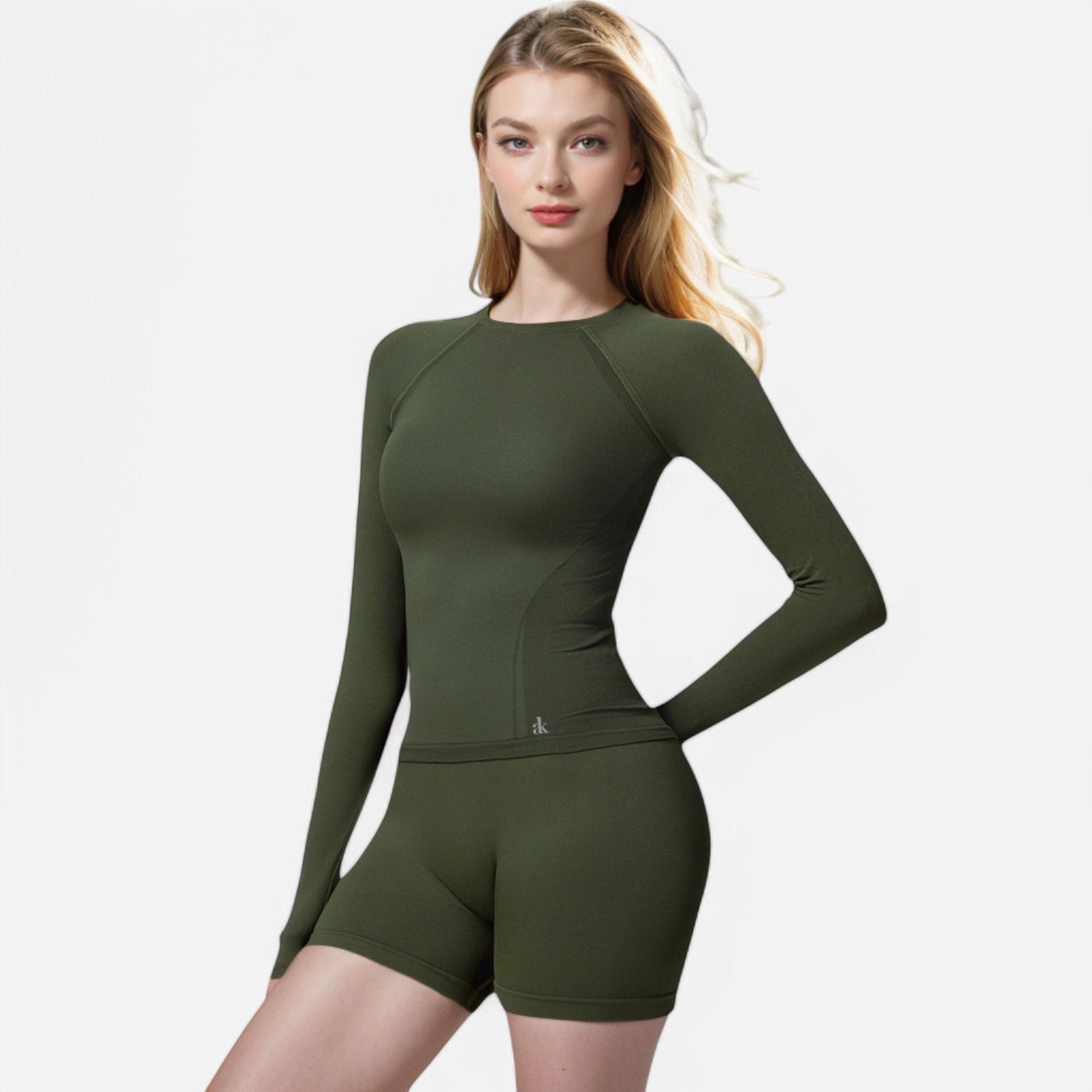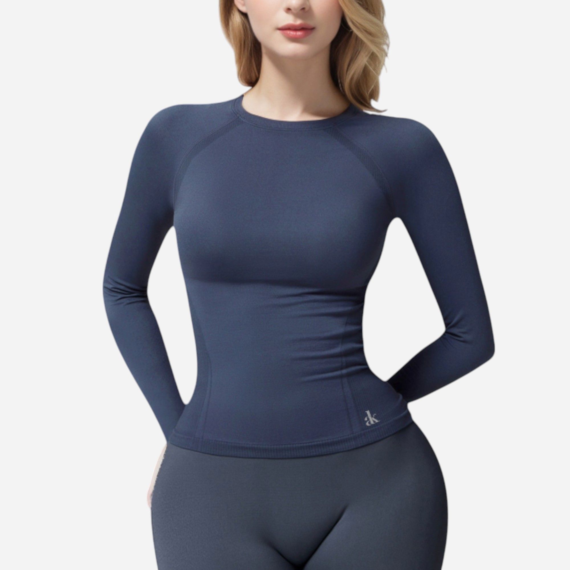Women's Long Sleeve Fitted Crew Neck Top offers a sleek and sculpted silhouette with its form-fitting design and structured seam detailing. Made from smooth, stretchy fabric, this top provides a comfortable, second-skin feel while ensuring full coverage. The thumbhole cuffs add a functional and stylish touch, keeping sleeves in place. This top blends modern aesthetics with a streamlined fit for a polished and effortless look.