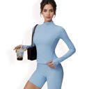 Women's Ribbed Long Sleeve Half-Zip Activewear Top is designed for ultimate comfort and performance. Featuring a stylish ribbed texture and a functional half-zip closure, this top is crafted from soft, stretchy fabric that moves with you. The high neckline and thumbhole sleeves add a practical and chic touch. Perfect for workouts, yoga, or casual athleisure looks, this top pairs effortlessly with leggings or joggers.