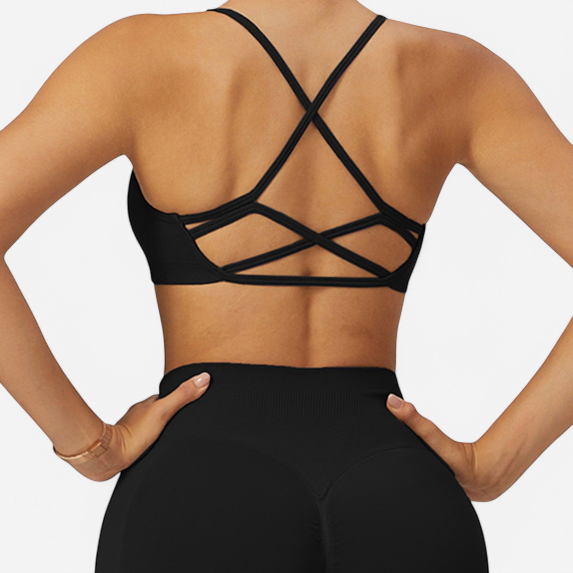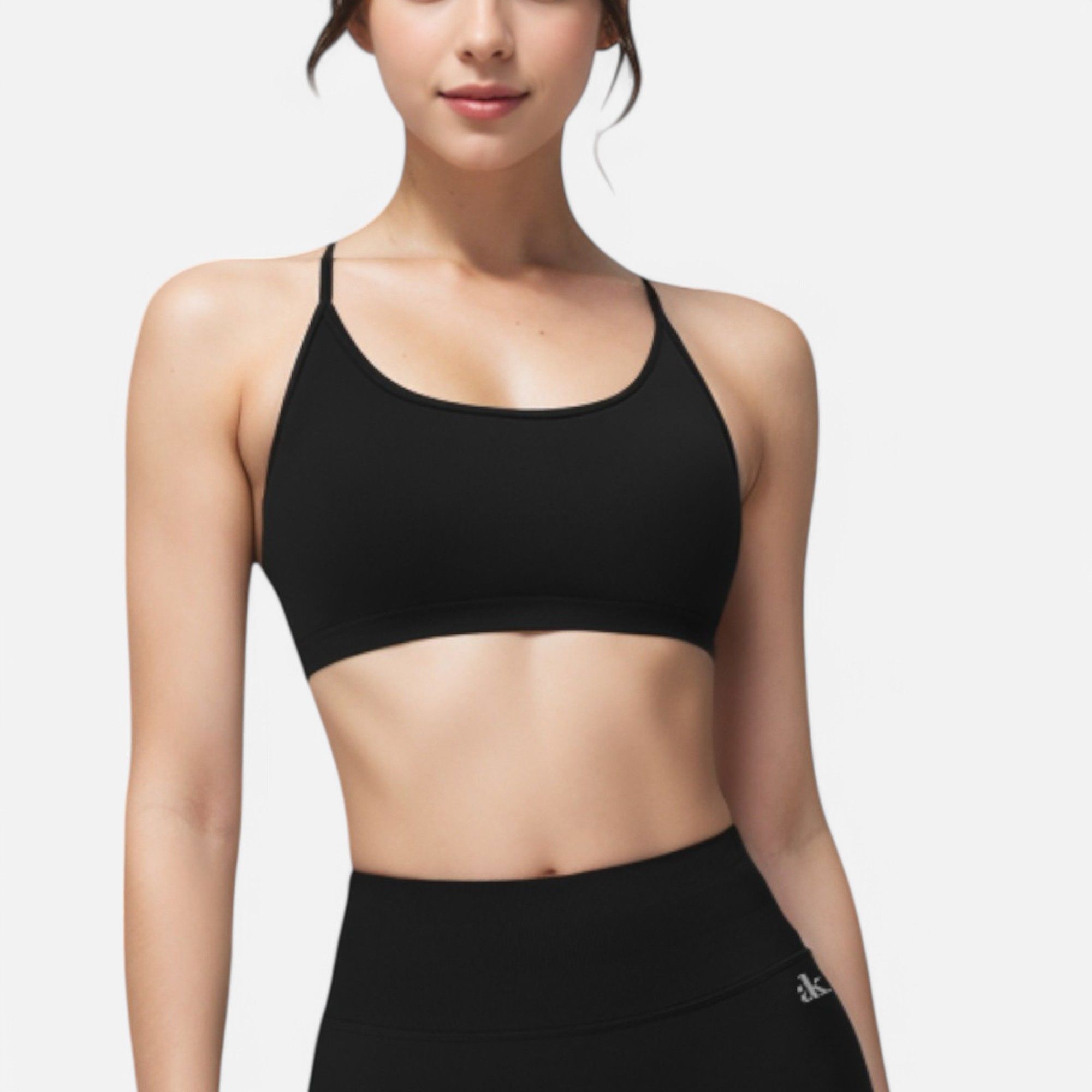Women's Seamless Sports Bra with Scoop Neck and Thin Fixed Straps