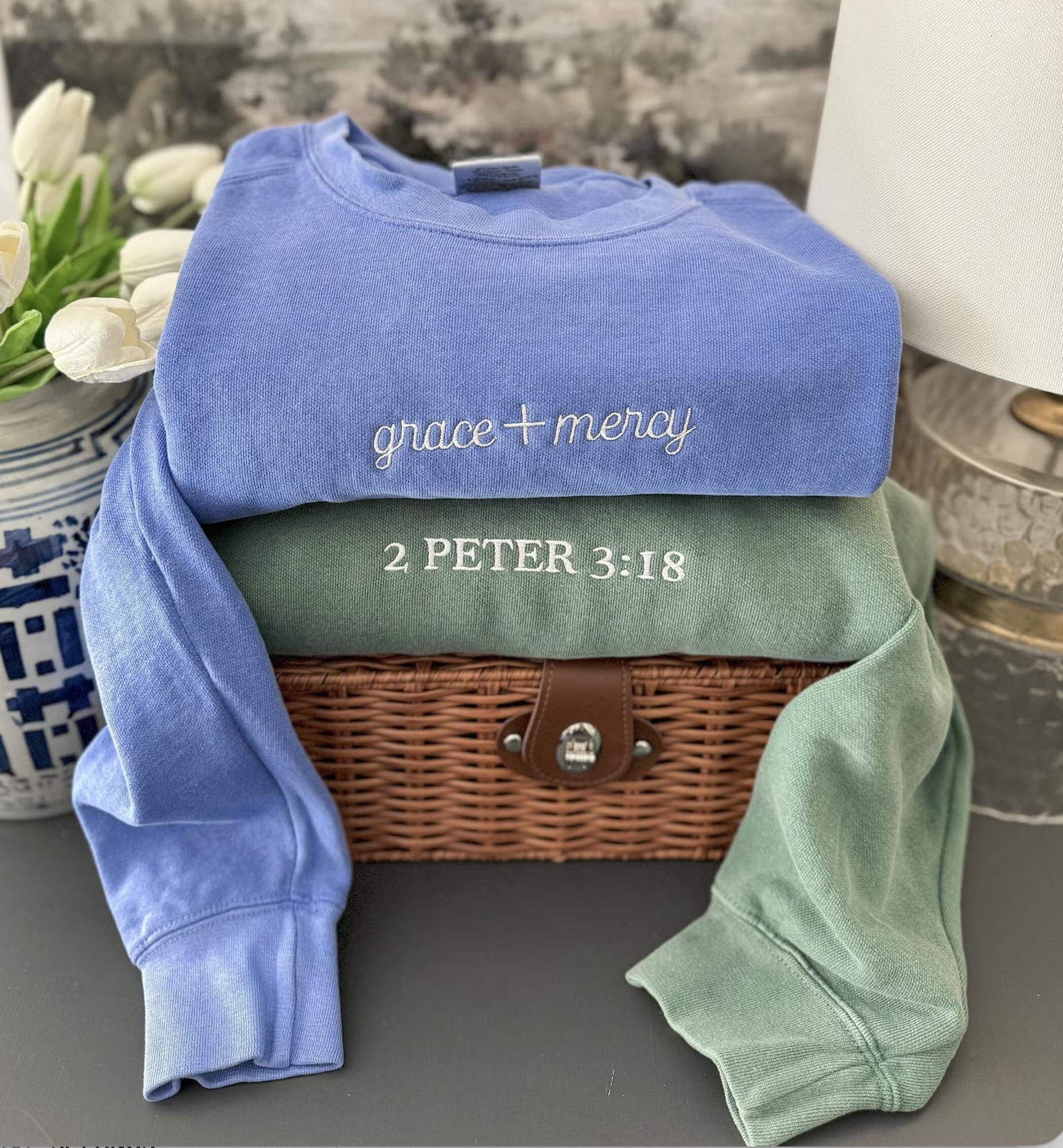 Each sweatshirt is professionally embroidered with your choice of name, short quote, bible verse, etc. making it the perfect everyday staple or thoughtful gift.