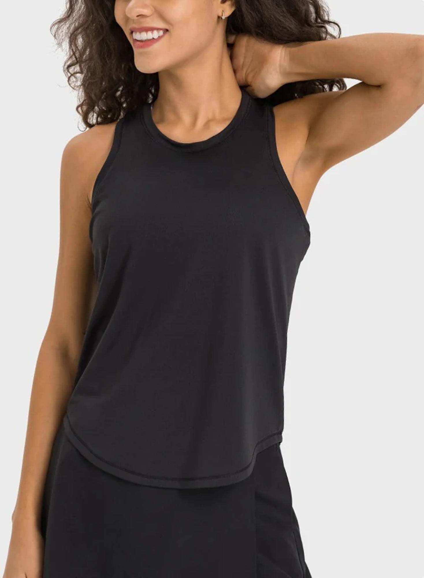 The Pickleball Tennis Standard Tank Top features a relaxed fit and a high neckline, offering both comfort and coverage. The curved hem adds a touch of elegance, making it perfect for pairing with your favorite shorts or skirts.