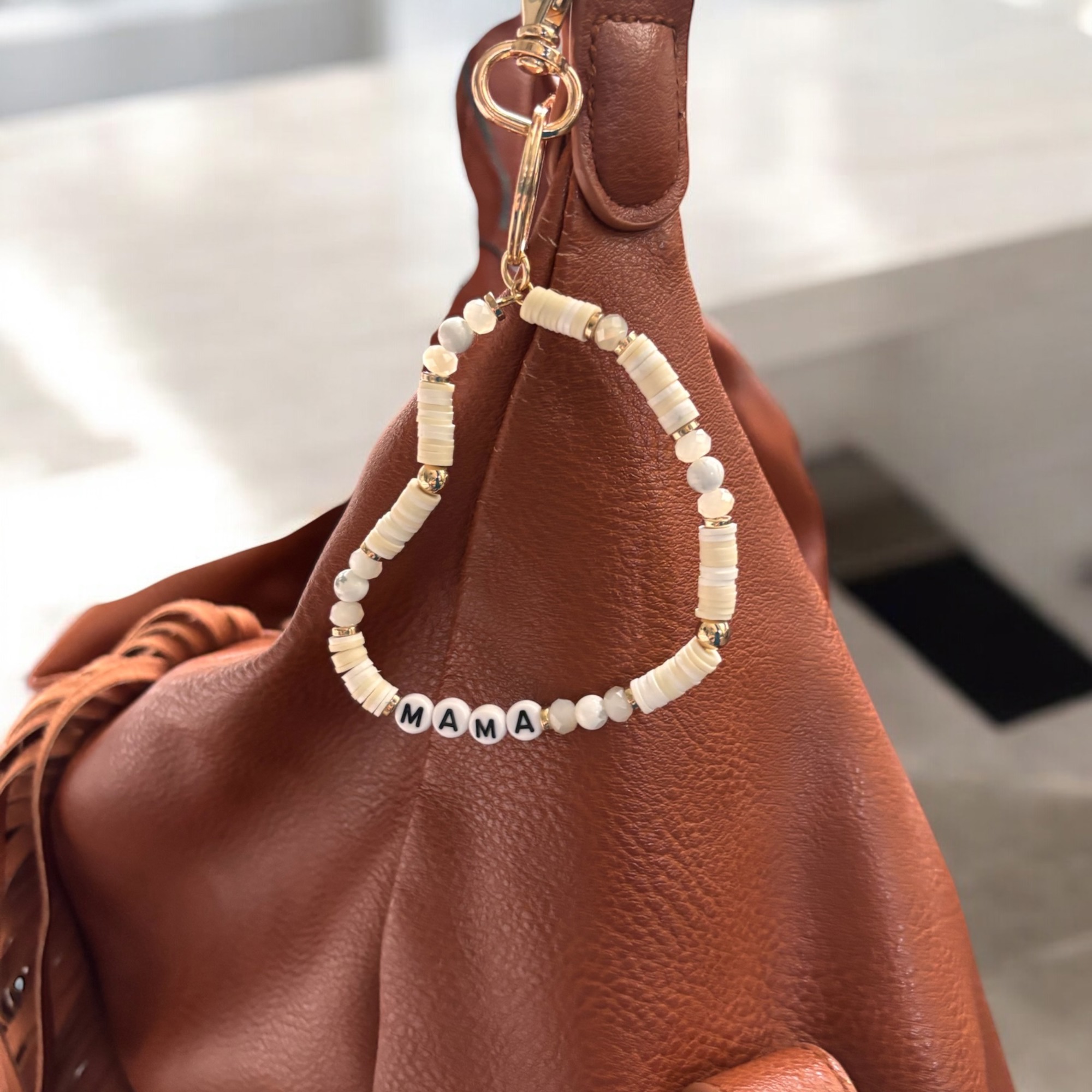 A simple reminder of love, this Mama Heart keychain features heishi beads in a heart accent. Lightweight and easy to carry, this clips to purses, diaper bags, and more! Comes in our signature packaging and ships within 1 business day!