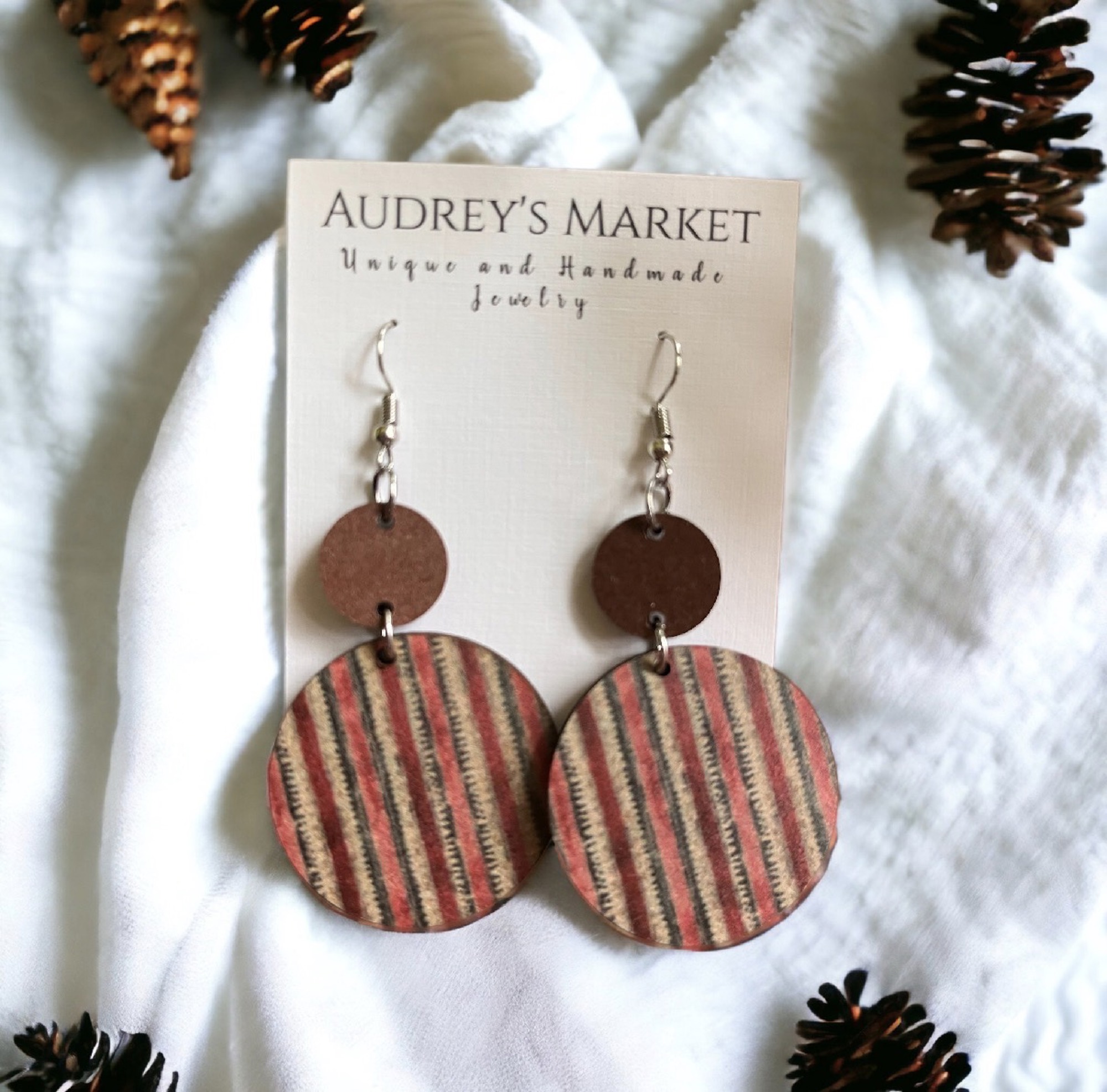 Wooden Christmas Stripes Festive Dangle Drop Earrings