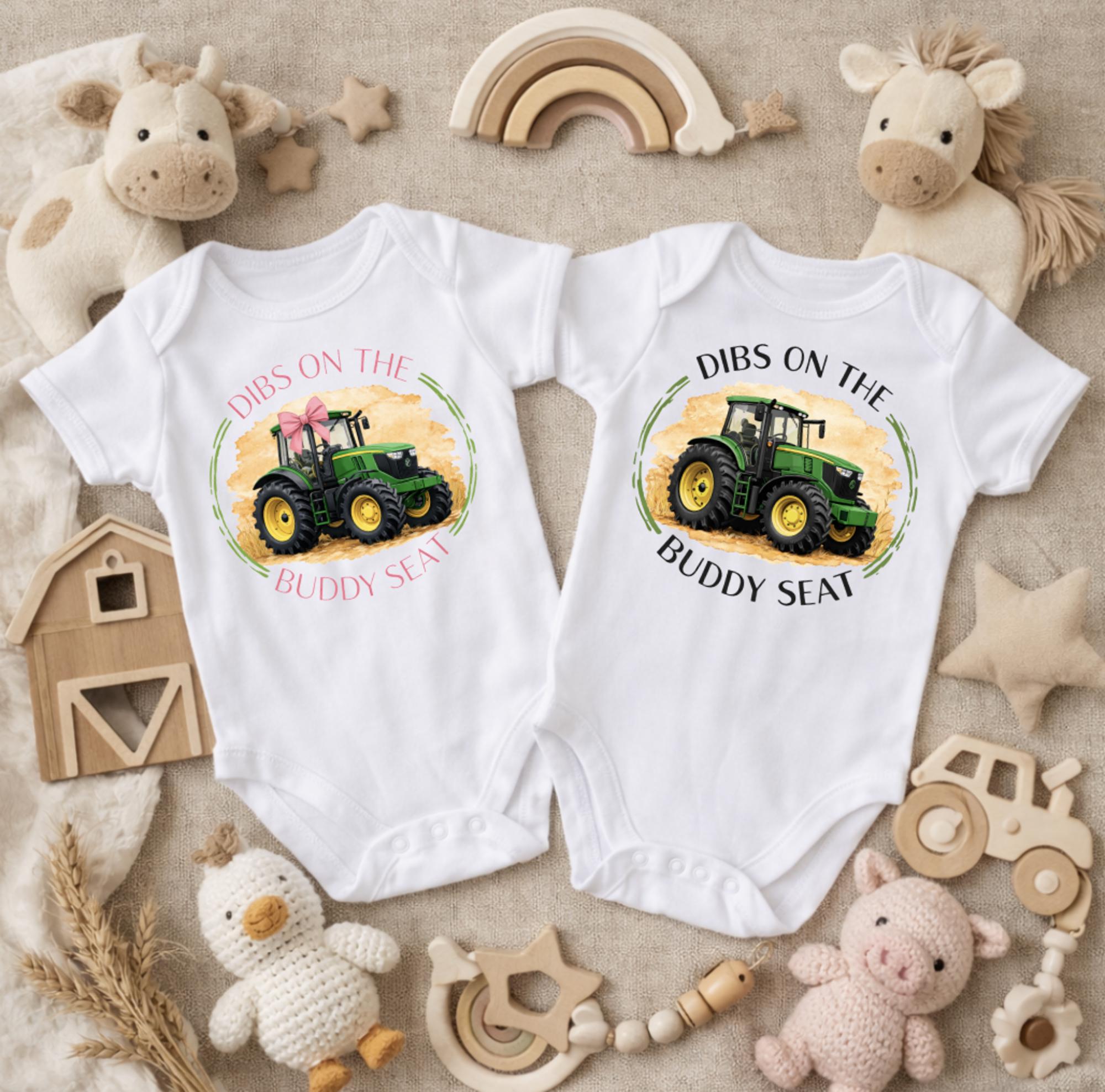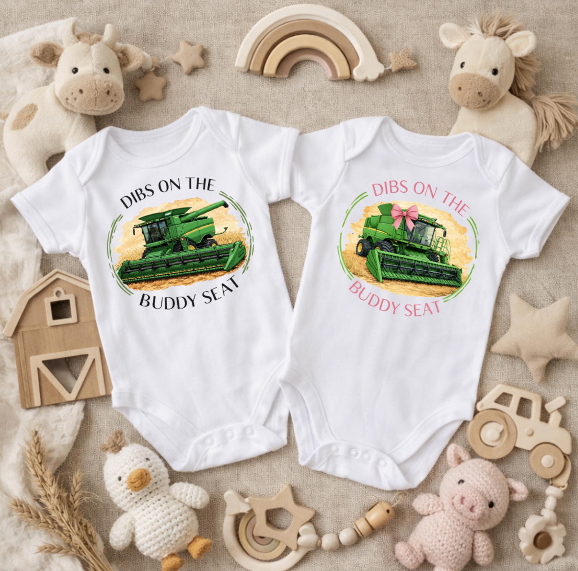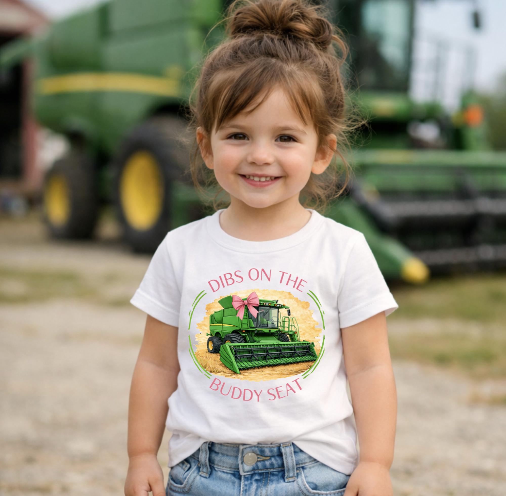 Dibs on the Buddy Seat Green Tractor Harvest Kids Onesie and Tee Shirts