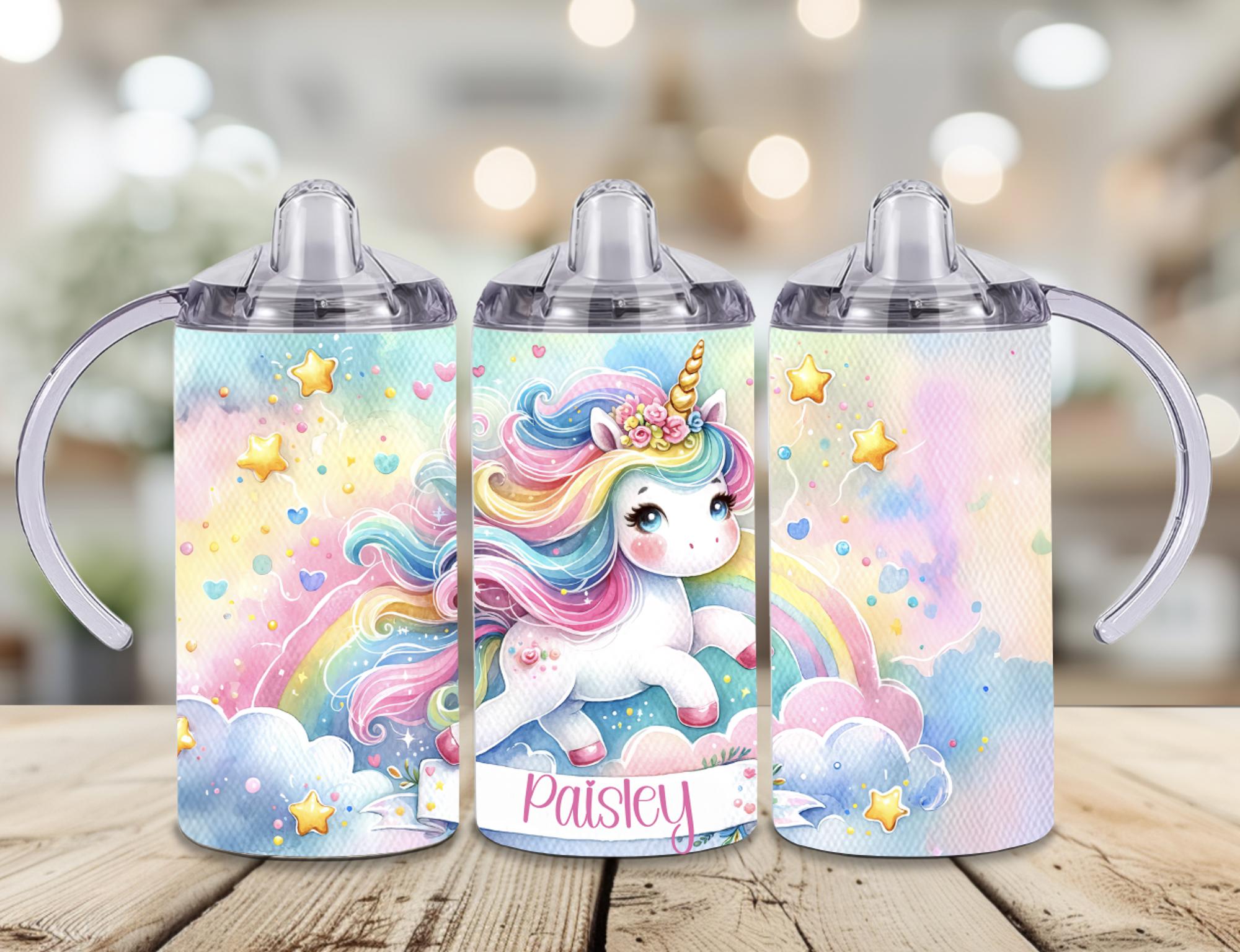 Pastel Rainbow Unicorn 12 oz Personalized Stainless Steel Baby Sippy Cup