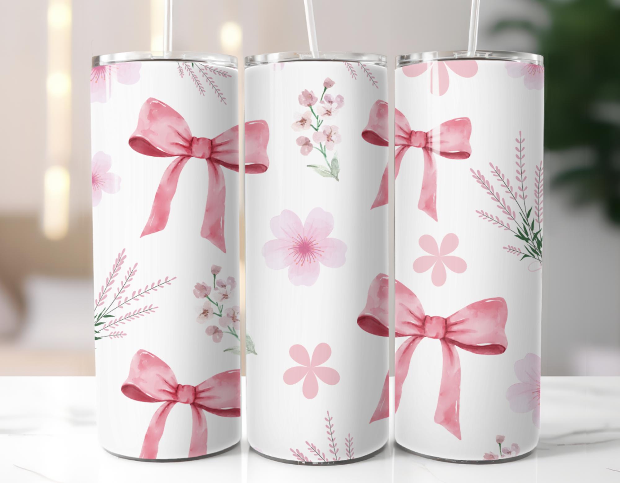 Pink Bows and Flowers 20 oz Stainless Steel Tumbler
