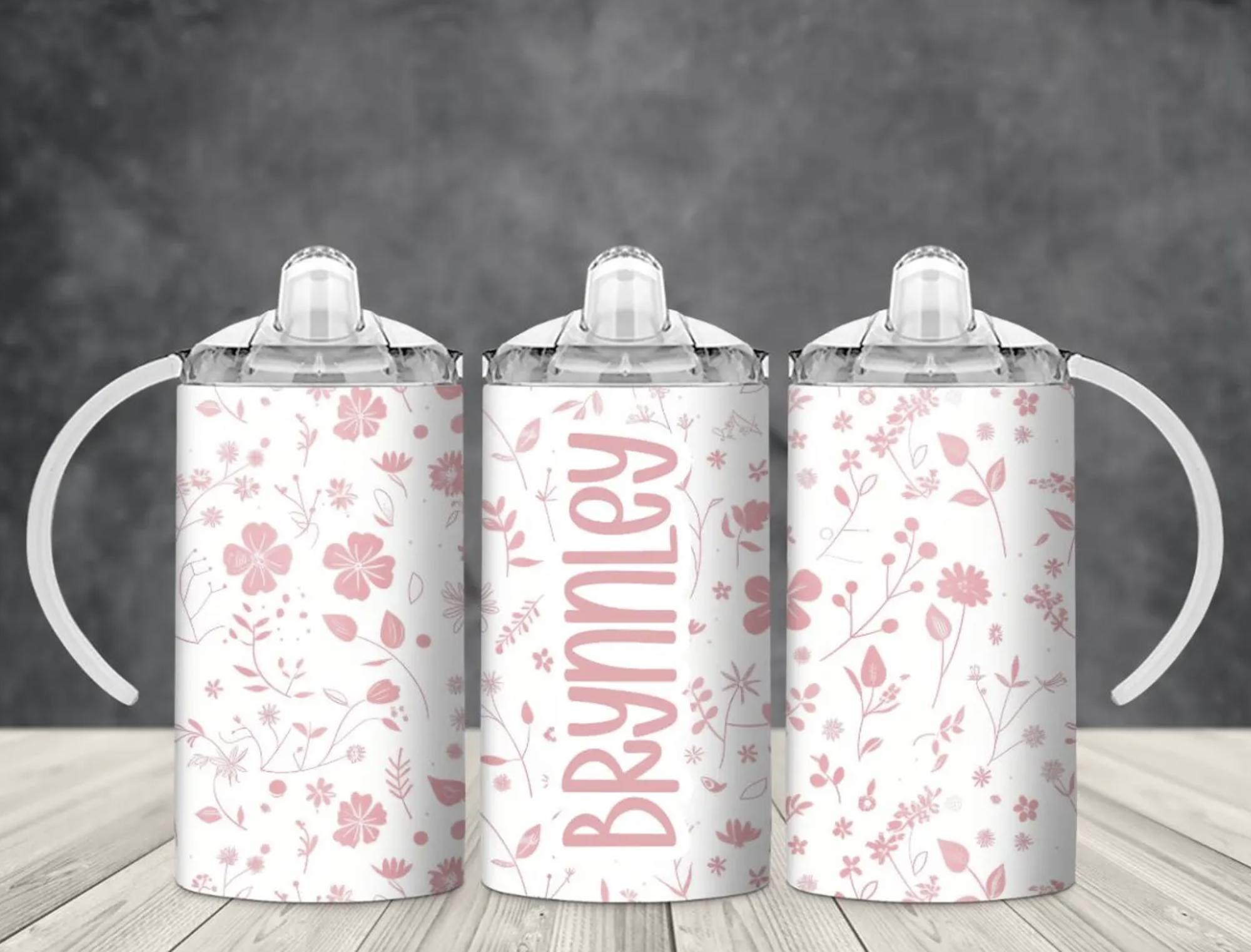 Pink Floral Baby 12 oz Sippy cup with 2 Lids & Straw