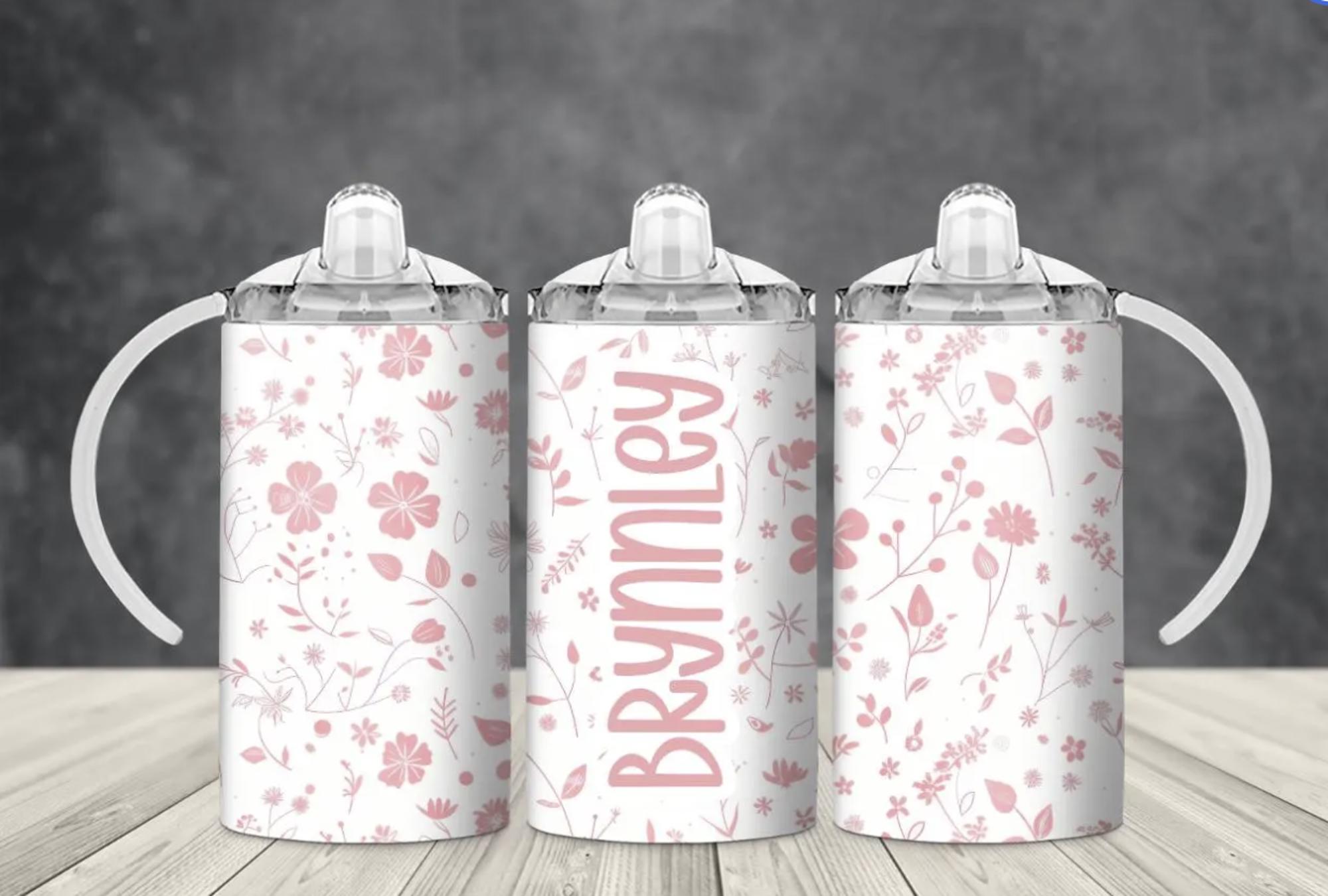 Pink Floral Personalized 12 oz Girls Sippy Cup