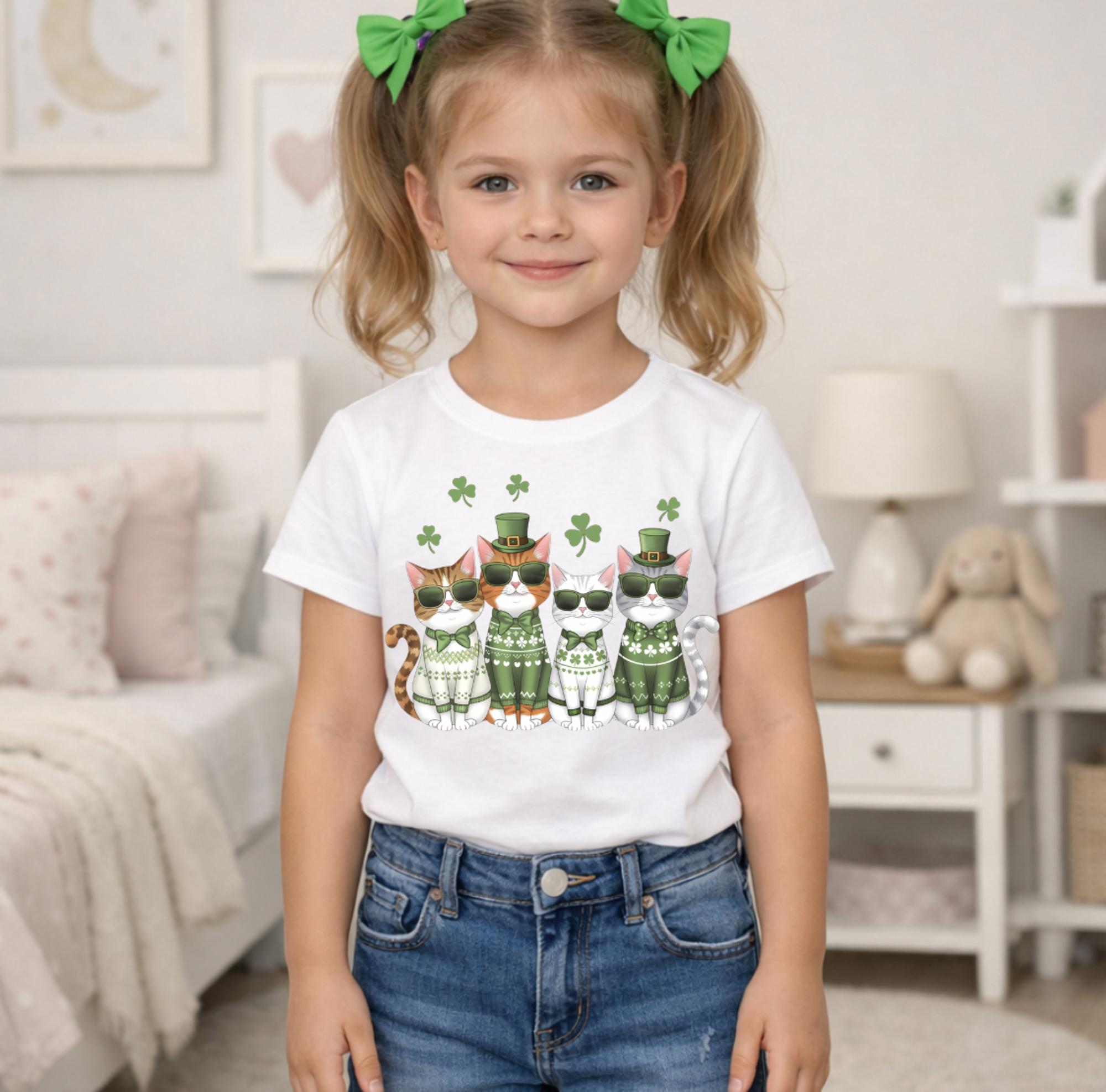 St Patrick's Day Cats Girls Tee Shirt