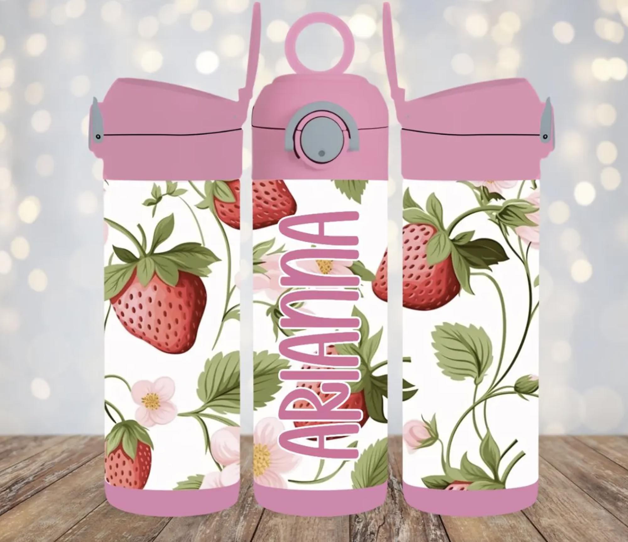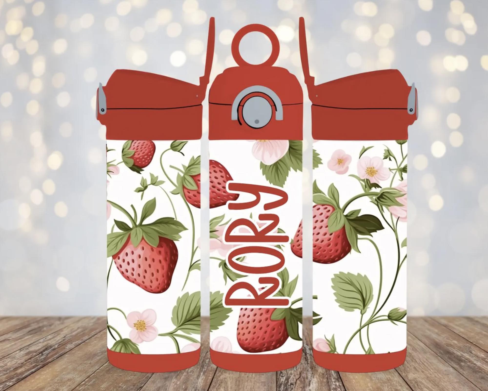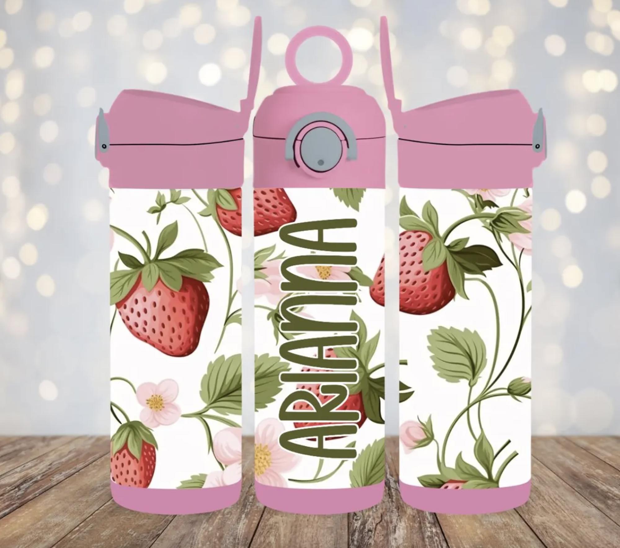 Strawberries Personalized 12 oz Kids Flip Top Tumbler