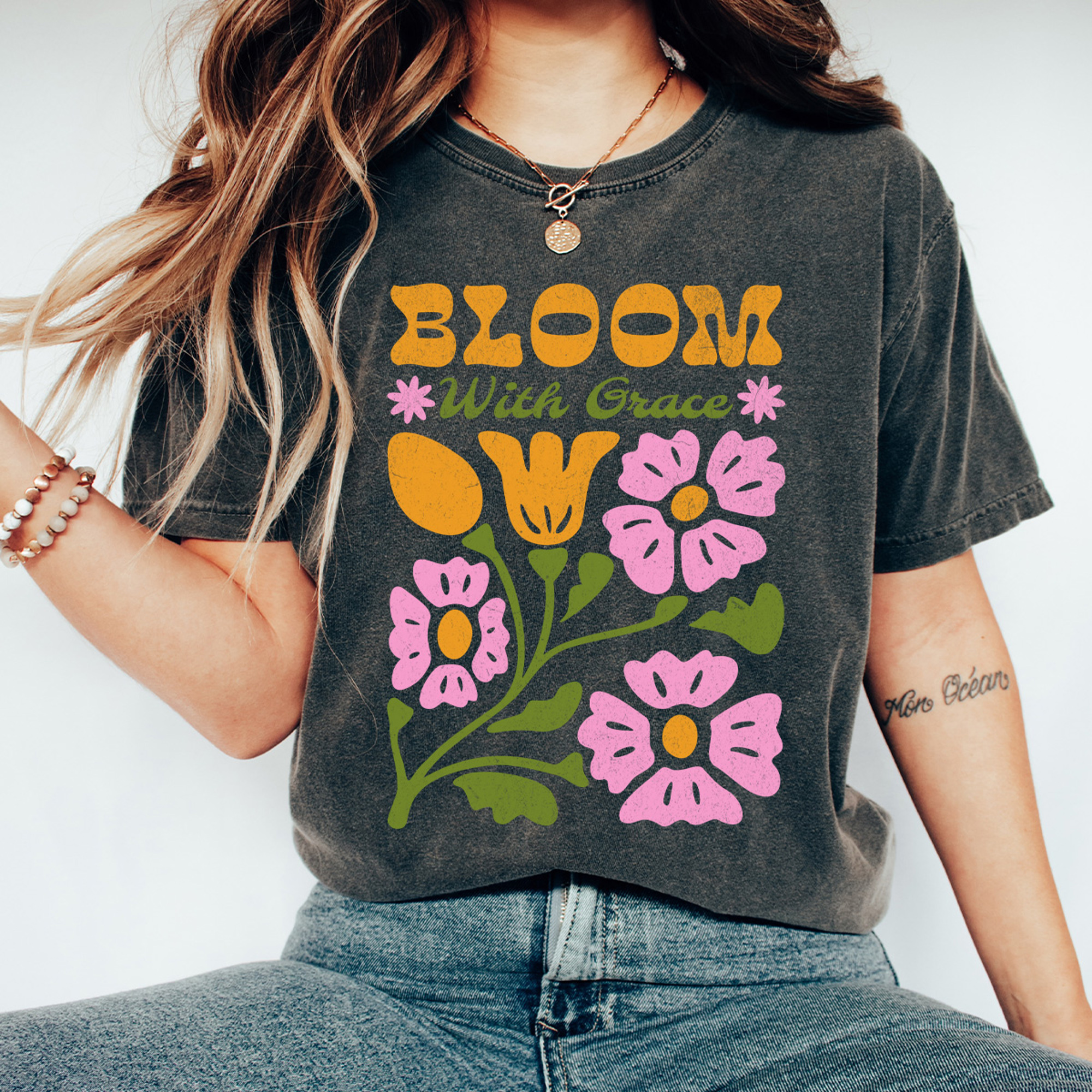 Bloom With Grace Comfort Colors Tee, Whimsical Flowers Graphic Tee, Spring Floral Shirt