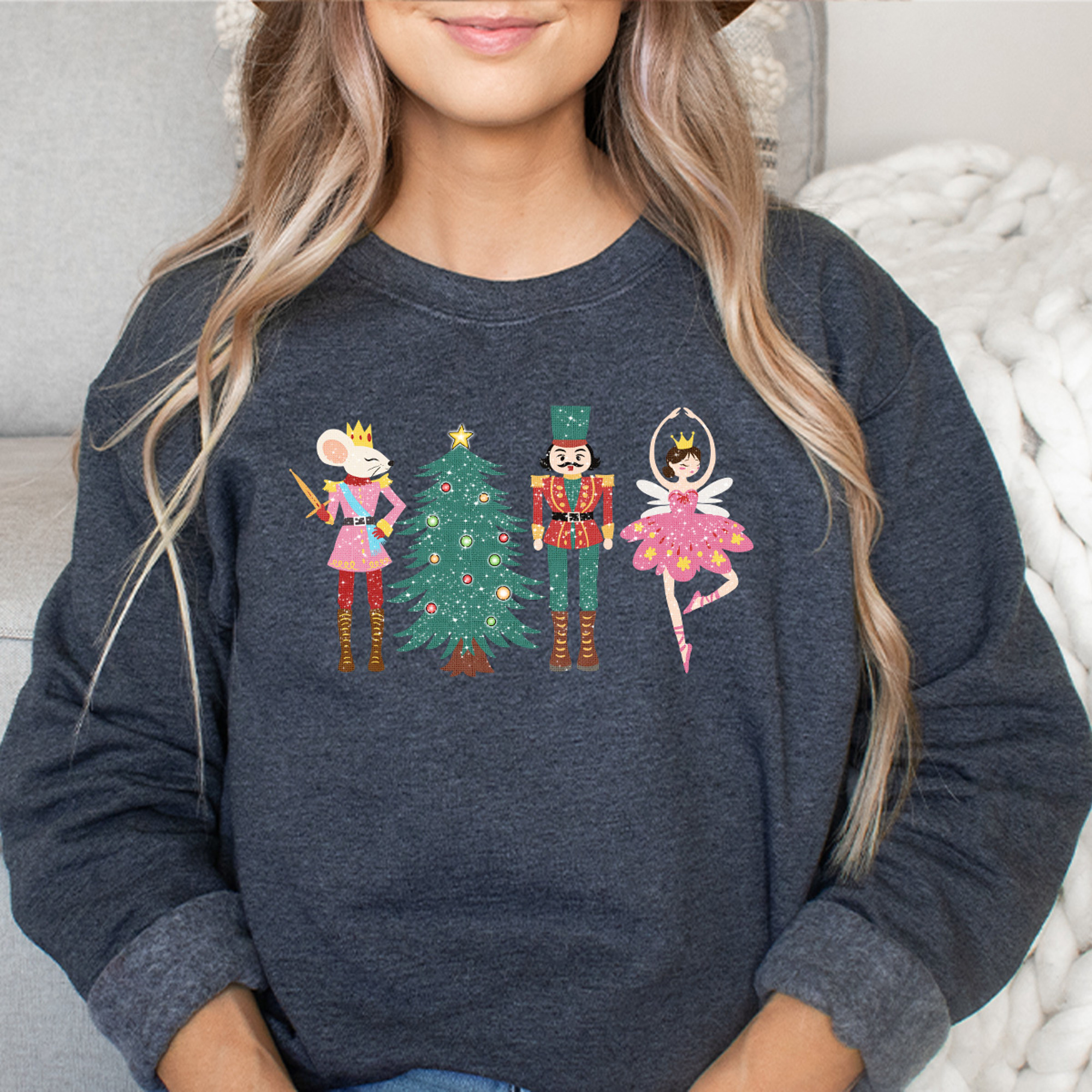 Cute Nutcracker Christmas Fleece Sweatshirt, Faux Glitter Pullover