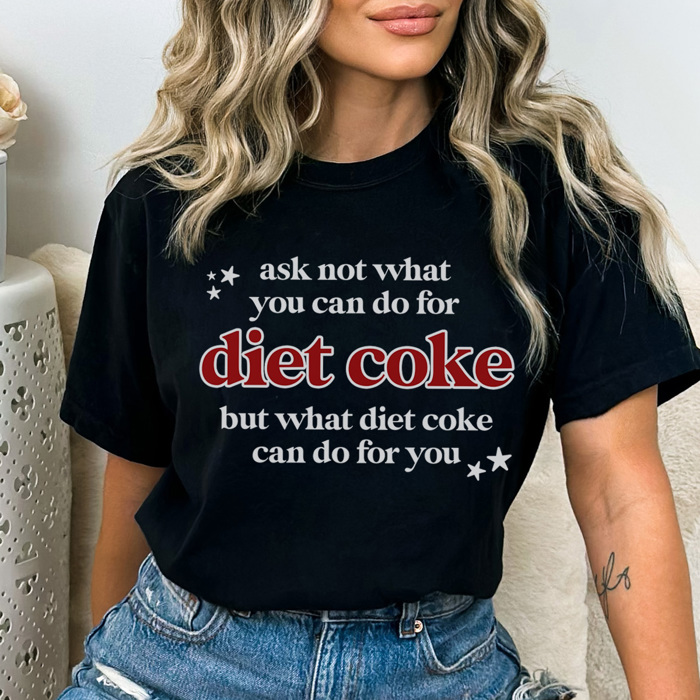 Calling all Diet Coke lovers—this funny graphic tee is made just for you! Proudly declaring your fizzy obsession, it’s the perfect blend of comfort and style. Pair it with your favorite jeans, cargo pants or shorts for an effortless and trendy outfit! Whether you're sipping your favorite drink or just need a little caffeine-fueled sass in your outfit, this tee brings the bubbly vibes. Great for everyday wear and makes a great birthday or Christmas gift for the Diet Coke fan who’s always got a can in hand. UNISEX SIZING FOR WOMEN: To find your perfect Unisex size, grab your favorite tee shirt, lay it flat on a table, take a few measurements, and pick the closest matching shirt. If you are in between 2 sizes always go on the larger, chances are your favorite tee has shrunk a little since you got it. For a looser fit, order your standard size or size down for a semi-fitted look. *These crew neck tees are Comfort Color Brand and unisex, which means they are similar to a traditional men's size. AVAILABLE SIZES: Small - Length, 26", Width, 18" (4/6) Medium - Length, 28", Width, 20" (8/10) Large - Length, 29", Width, 22" (12/14) XL - Length, 30", Width, 24" (16/18) MATERIAL: 100% Cotton Heavyweight garment dyed for that lived in feel and almost no shrinkage at home. CARE INSTRUCTIONS: Machine wash warm. Turn inside out. Tumble dry low. FIT & DETAILS: Unisex fit (see suggested size chart) Order your normal unisex size for a loose fit