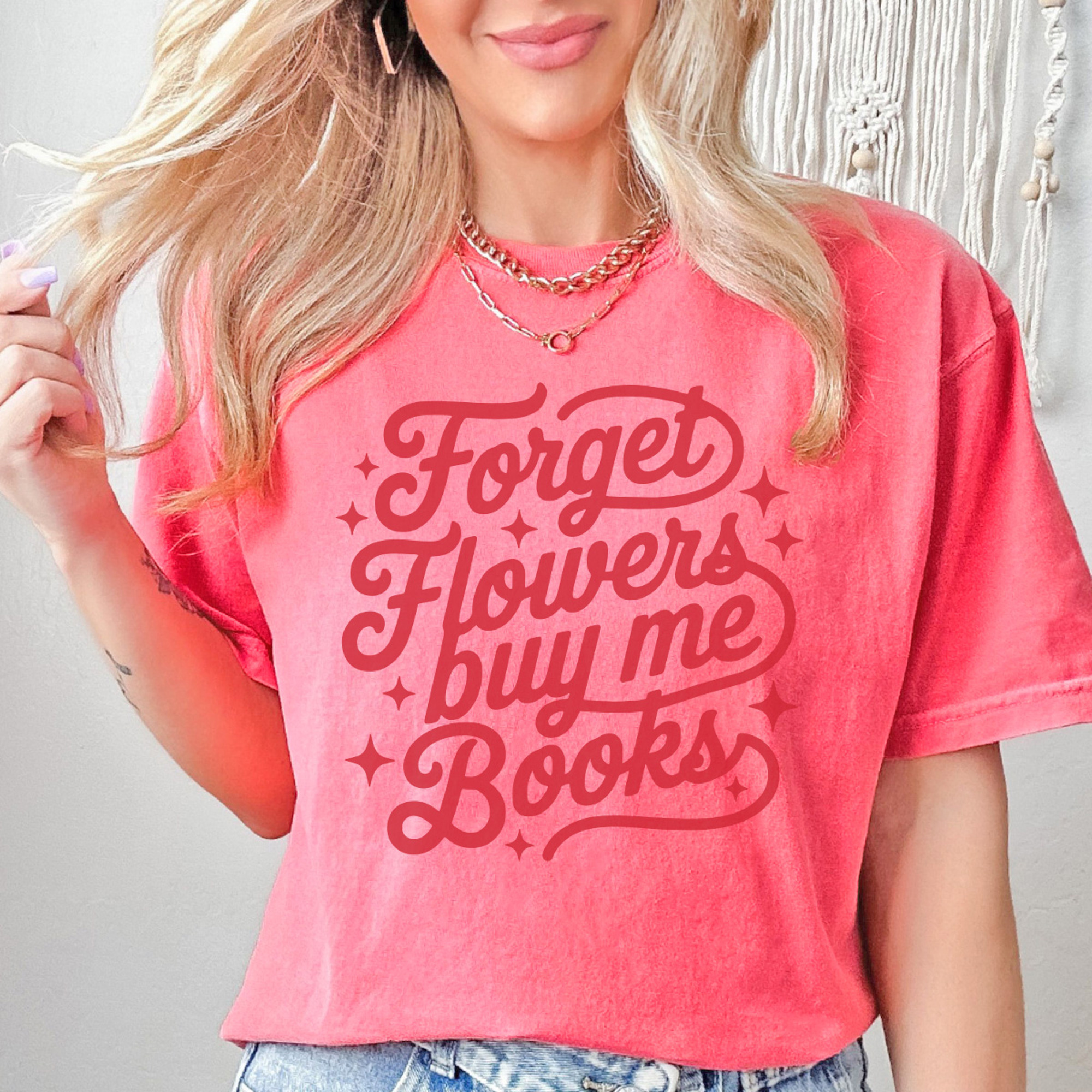 Forget Flowers Buy Me Books Graphic Tee, Cute Valentine's Day Tee, Comfort Colors, Super Soft, 5 Colors