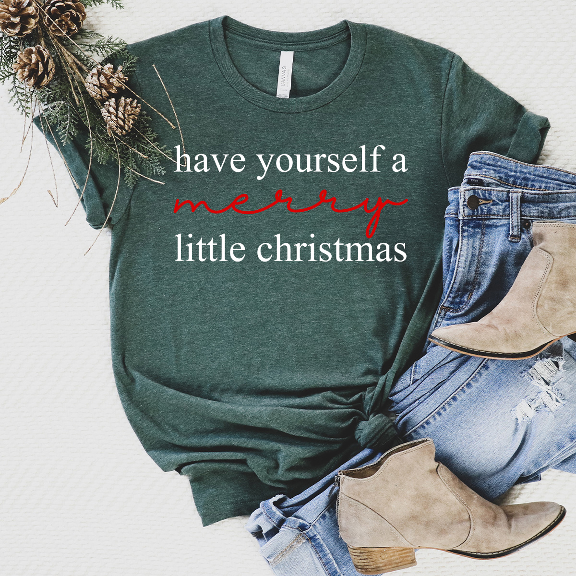 Celebrate the magic of the season with the Have Yourself A Merry Little Christmas Graphic Tee — a festive favorite that captures cozy holiday vibes in style! Featuring a charming Christmas design with cheerful lettering, this soft and comfortable tee is perfect for holiday parties, family gatherings, or lounging by the fire. A timeless piece that spreads warmth, joy, and classic Christmas spirit wherever you go.