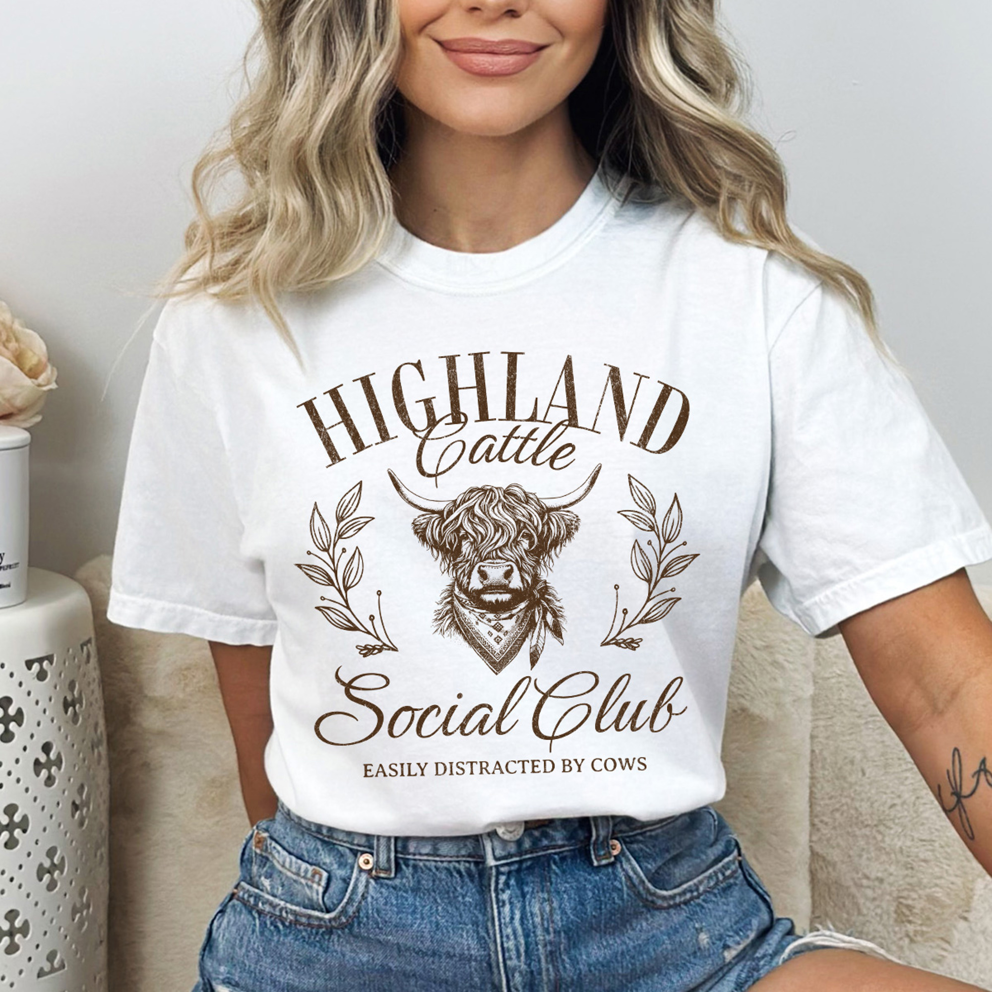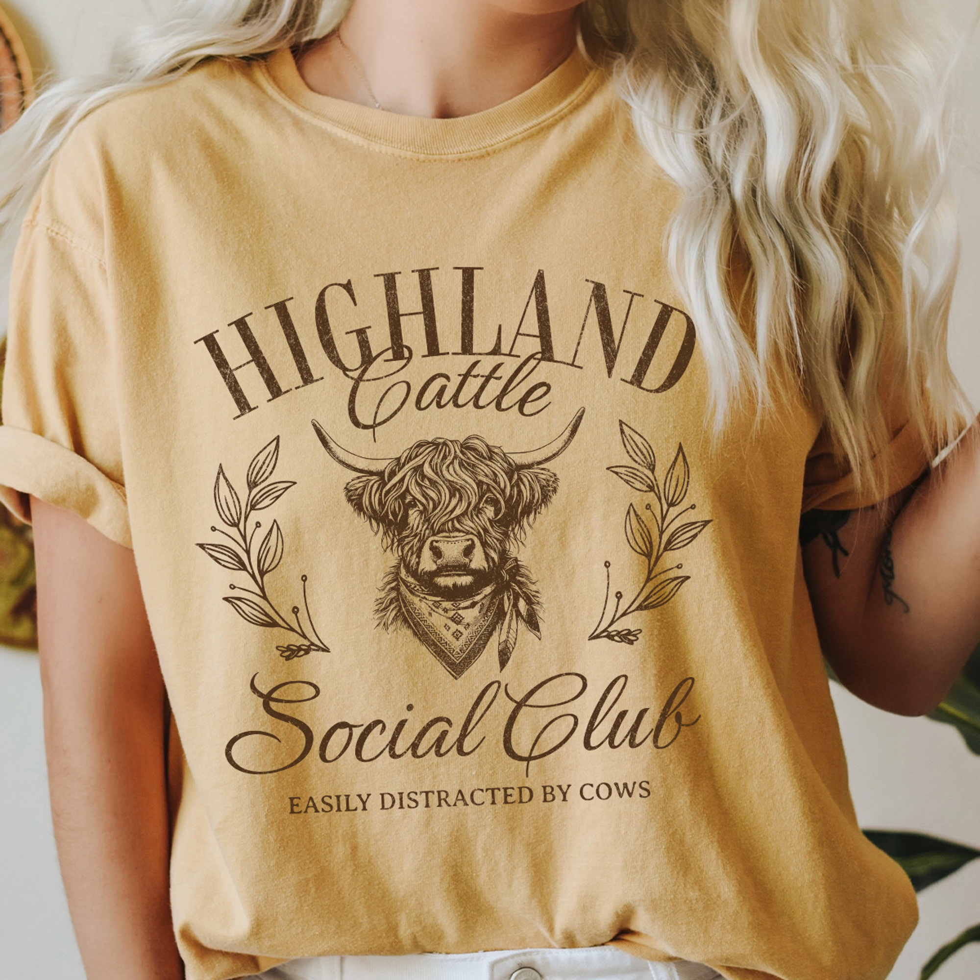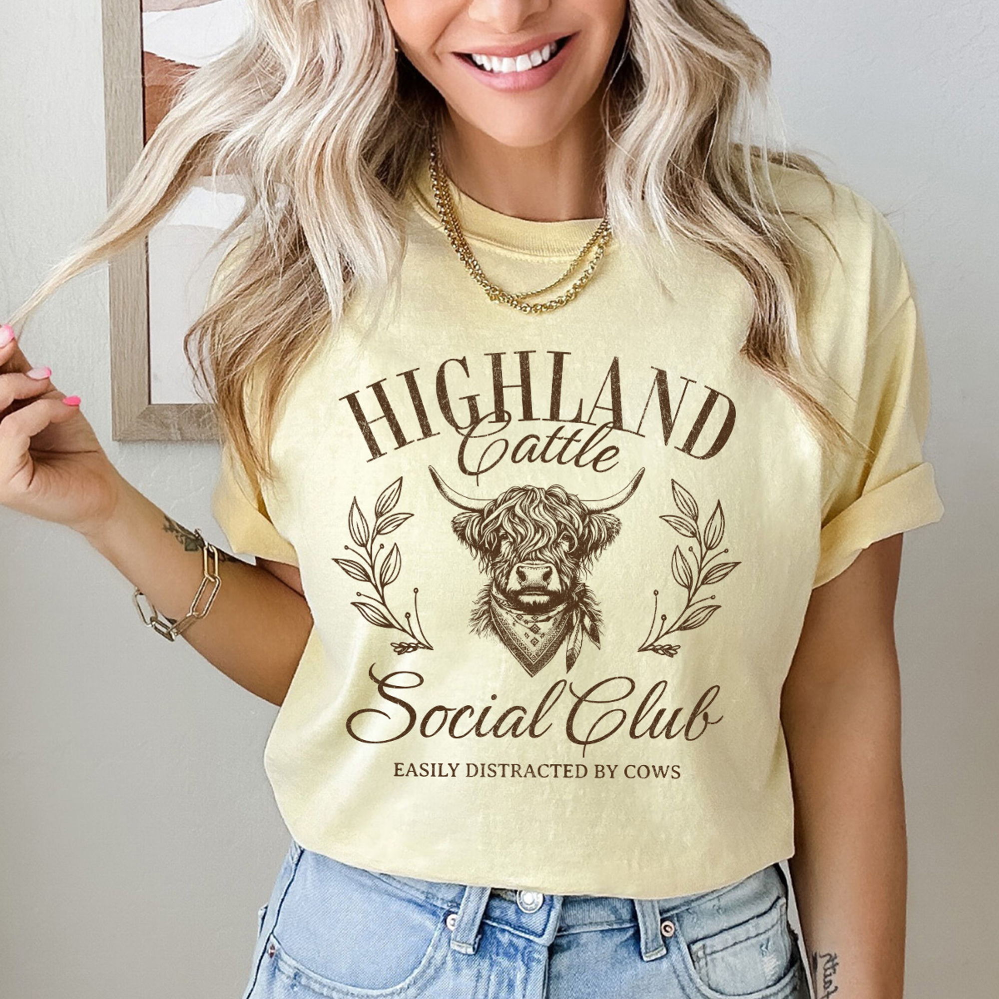 Highland Cattle Social Club Comfort Colors Tee, Easily Distracted By Cows Graphic Tee