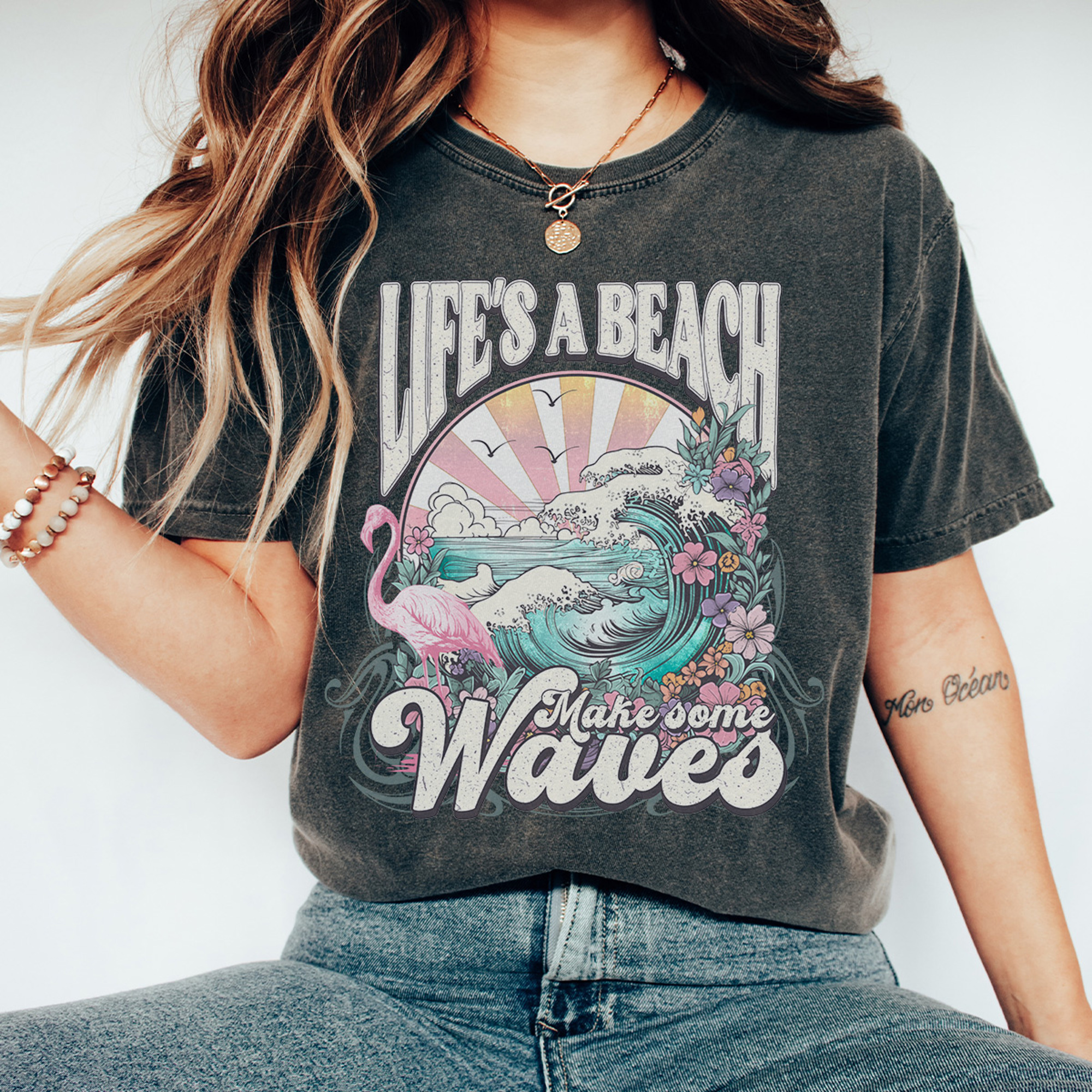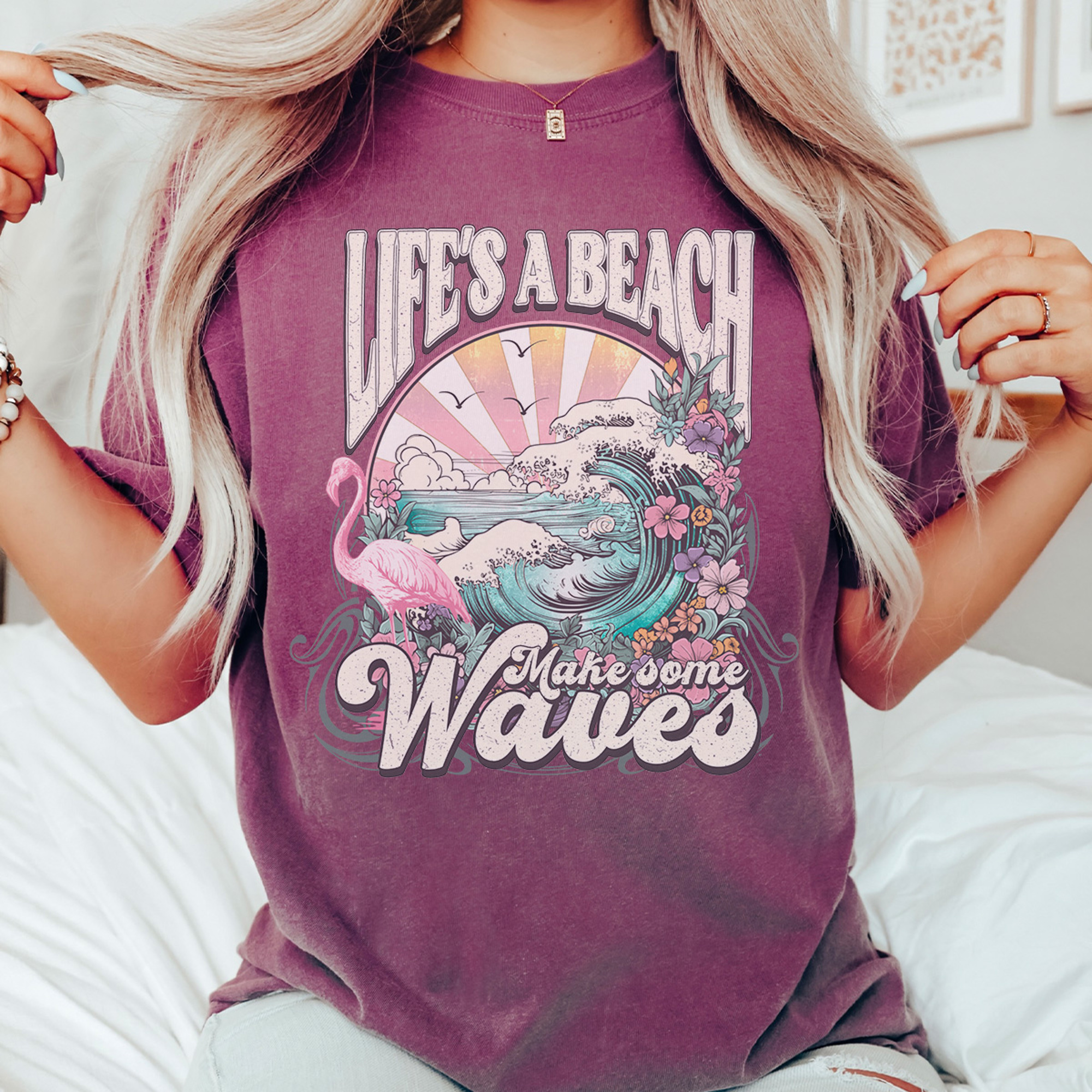 Life's A Beach Graphic Tee, Summer Tee, Beach Day Shirt, Vacation Tee, Mave Waves Shirt, Vintage Style, Comfort Colors