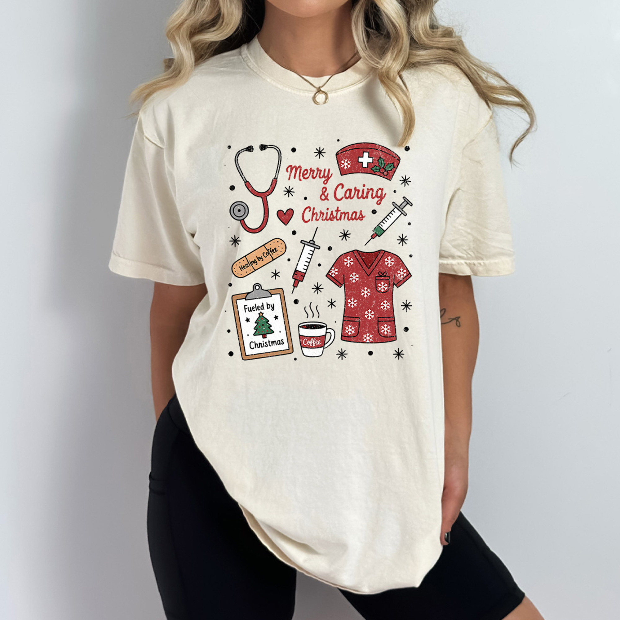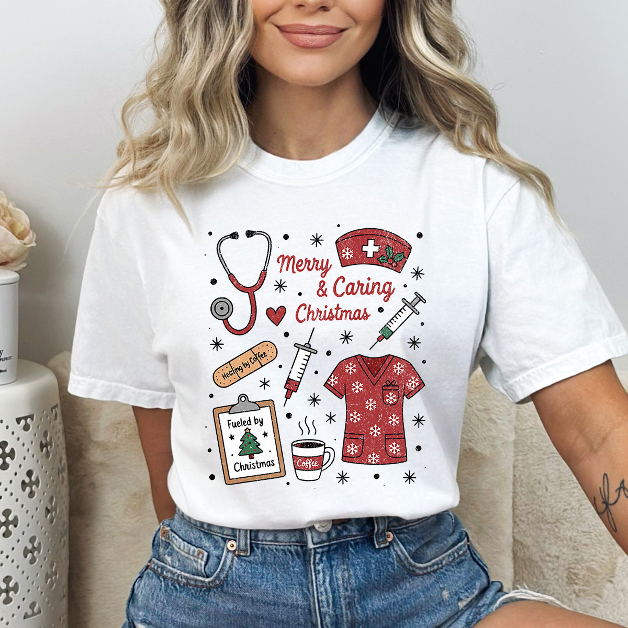 Spread holiday cheer with the Merry And Caring Christmas Comfort Colors Tee, designed for nurses, doctors, and healthcare heroes! Featuring a festive holiday graphic that celebrates compassion and care, this soft, cozy tee is perfect for showing your holiday spirit while on shift or off duty. Comfortable, cheerful, and heartfelt, it’s a must-have for healthcare professionals who make the season brighter for everyone.