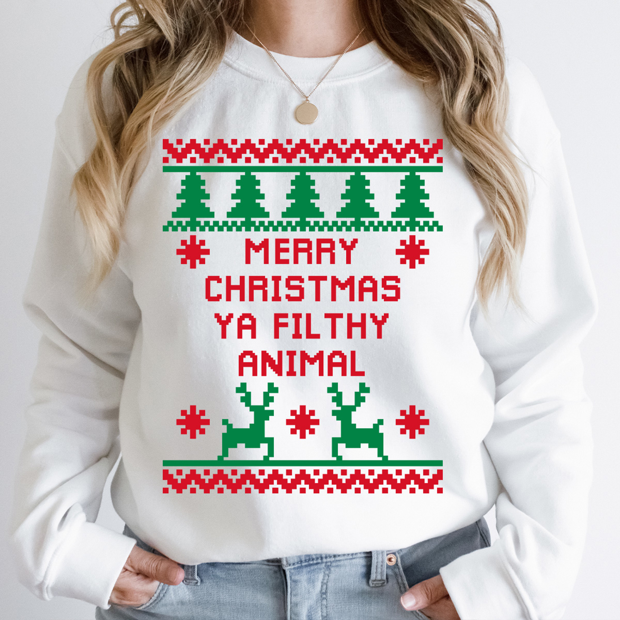 Merry Christmas Ya Filthy Animal Fleece Sweatshirt, Christmas Movie Pullover, Holiday Graphic