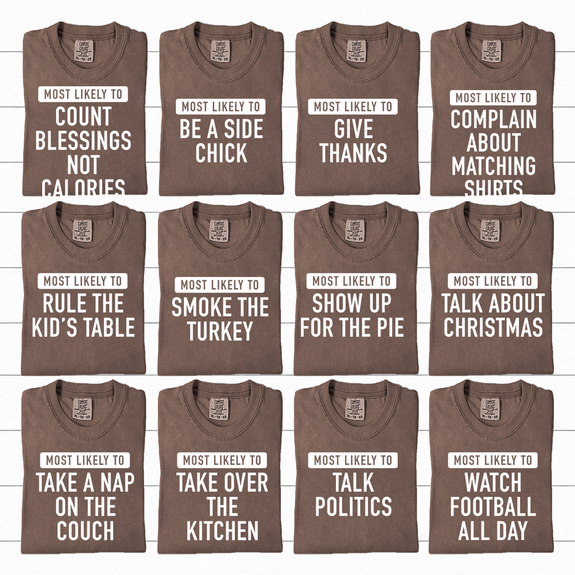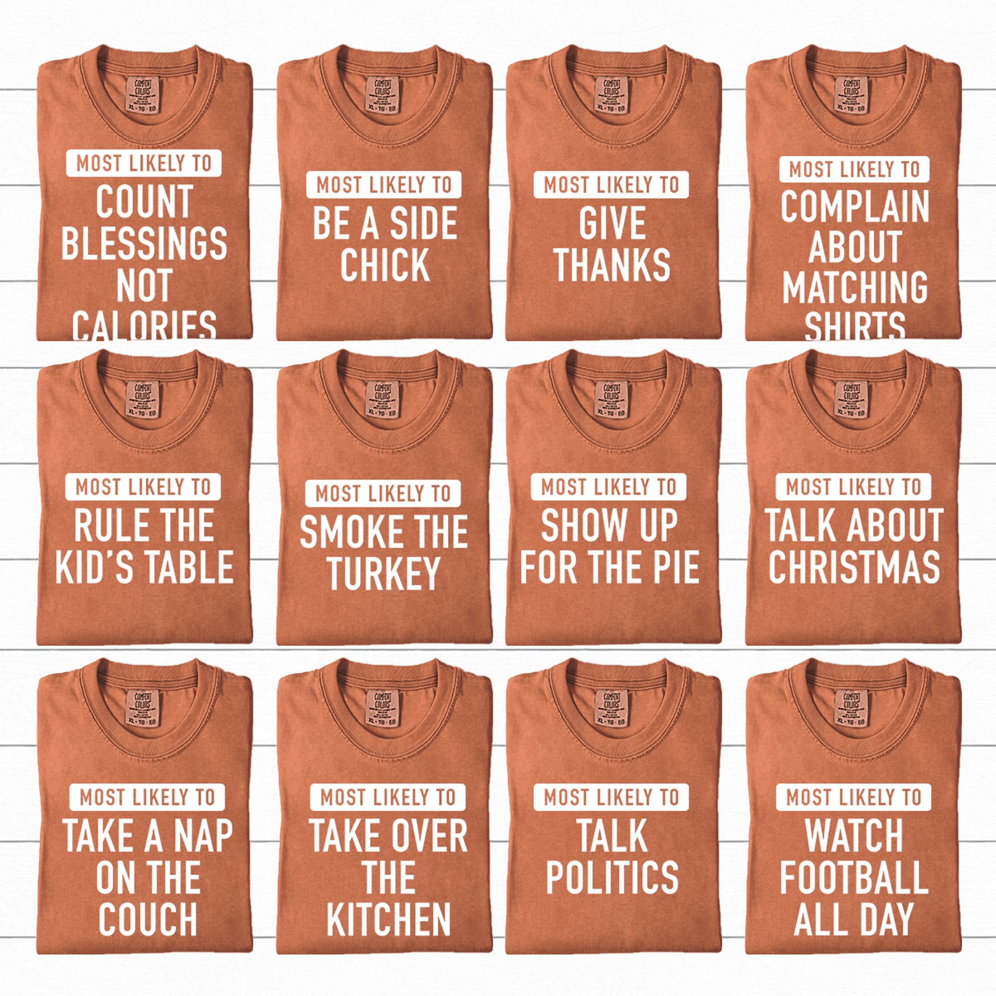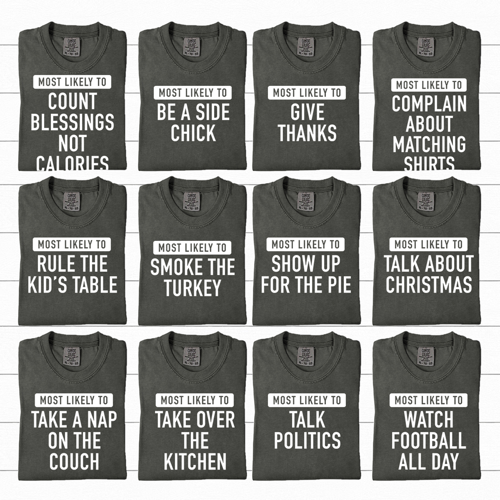 Most Likely Thanksgiving Graphic Tee, Funny Thanksgiving Shirt, Turkey Day, Matching Family Tees