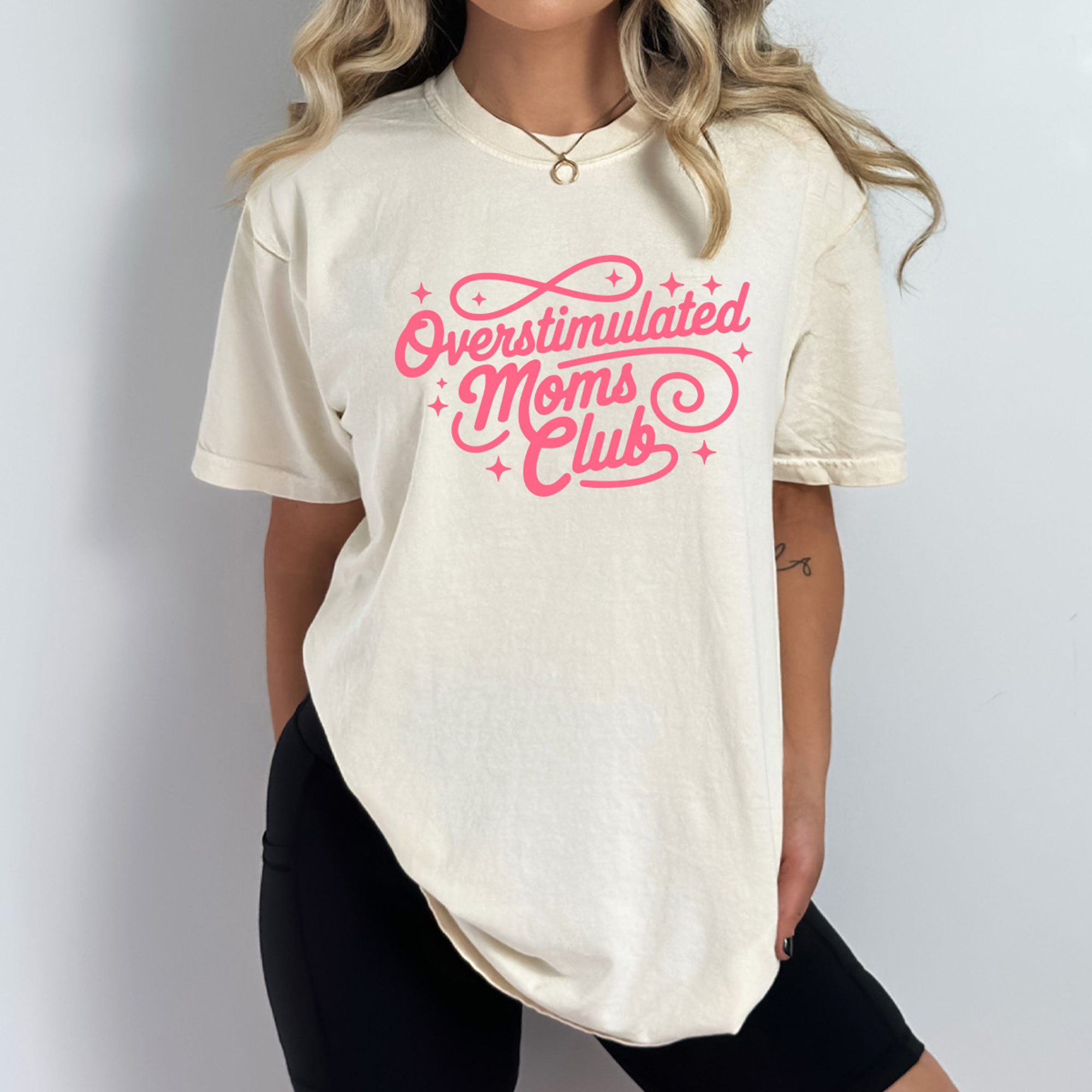Overstimulated Moms Club Comfort Colors Tee, Mom Life Graphic Tee, Motherhood Tee