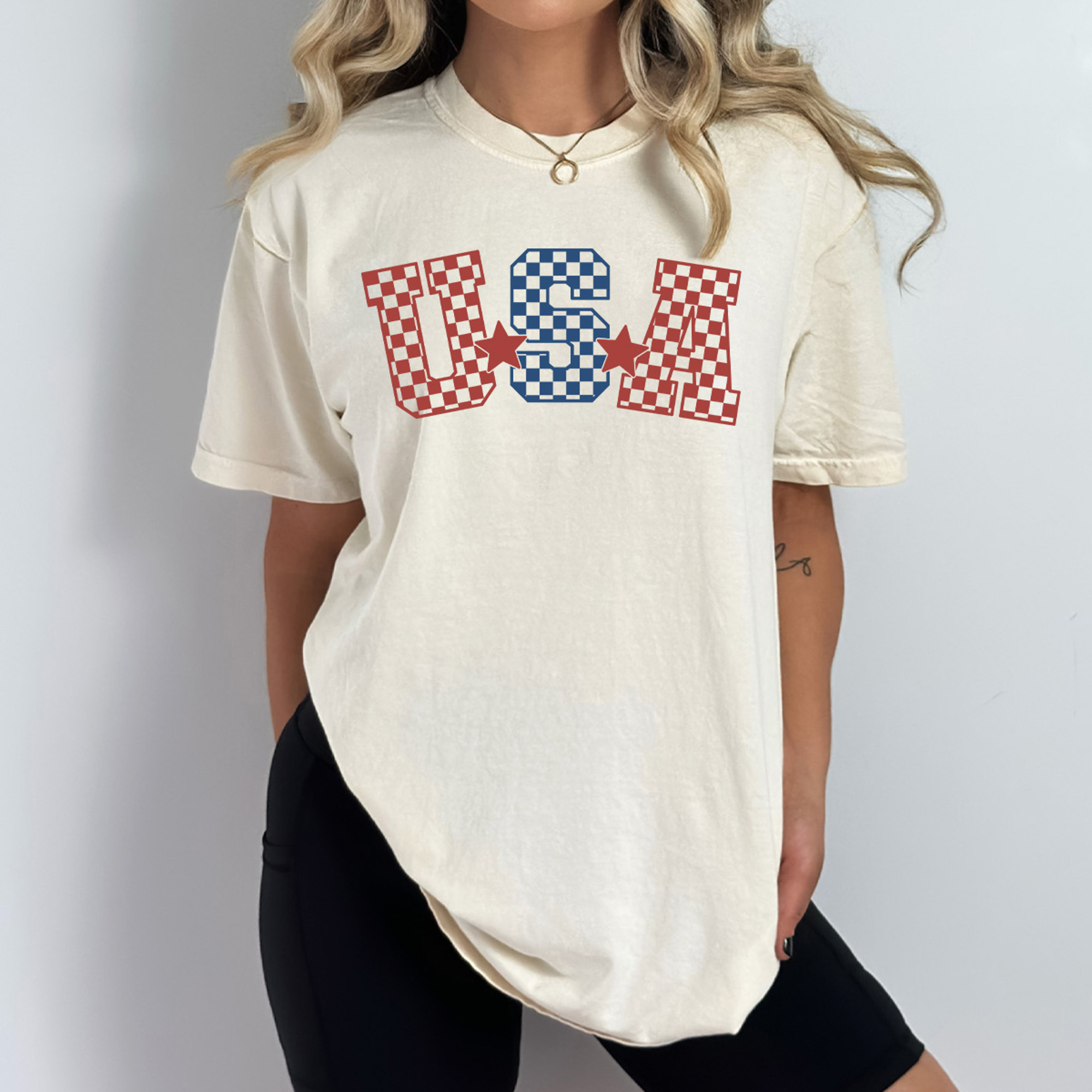 Show off your red, white, and bold in the Checkered USA Comfort Colors Tee! This patriotic tee features a trendy checkered "USA" graphic that blends classic Americana with a fun, modern twist. Printed on a soft, garment-dyed Comfort Colors shirt, it delivers unbeatable comfort and a relaxed, lived-in feel perfect for summer festivities.