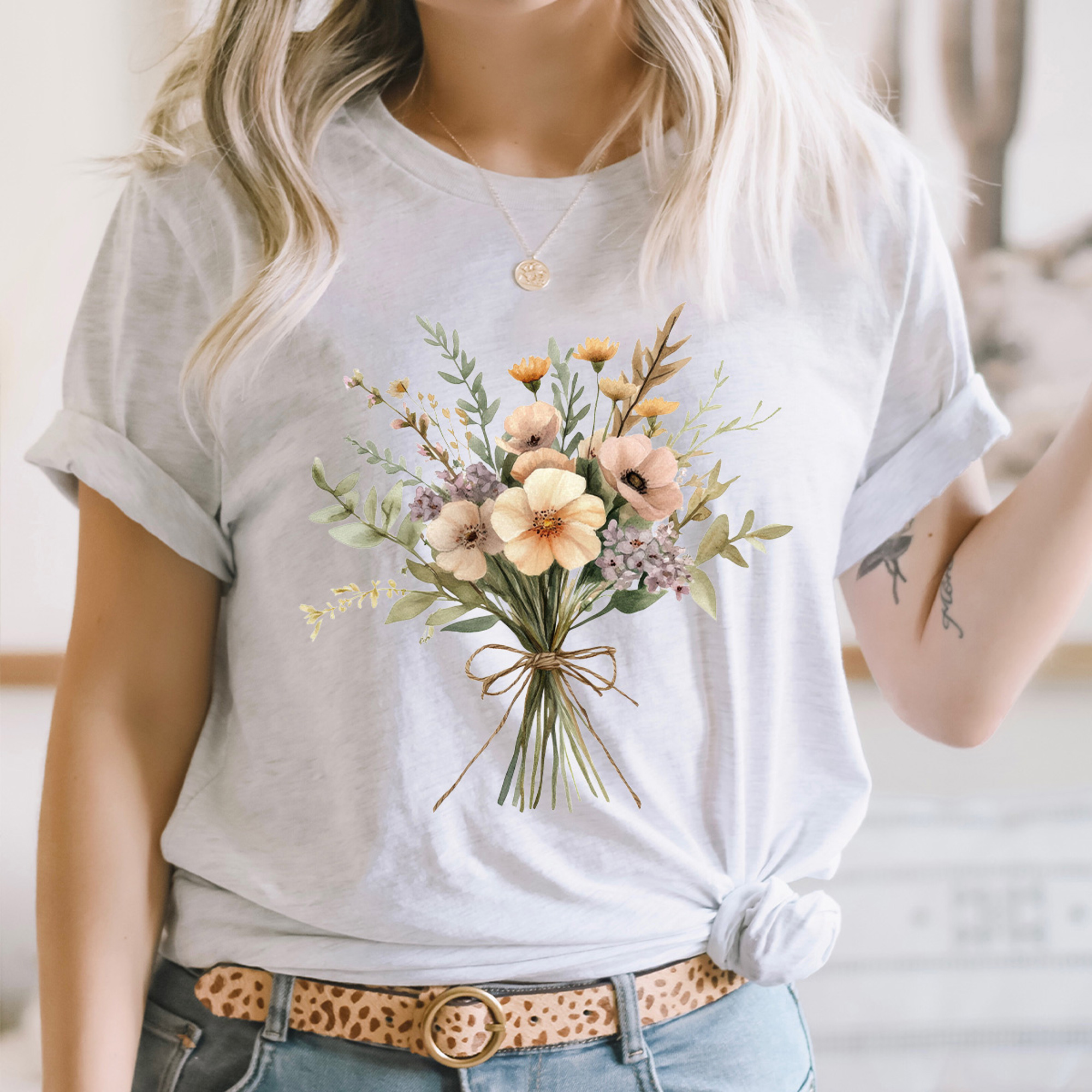 Vintage Flower Boquete Graphic Tee, Retro Floral Shirt, Spring Flowers Tee