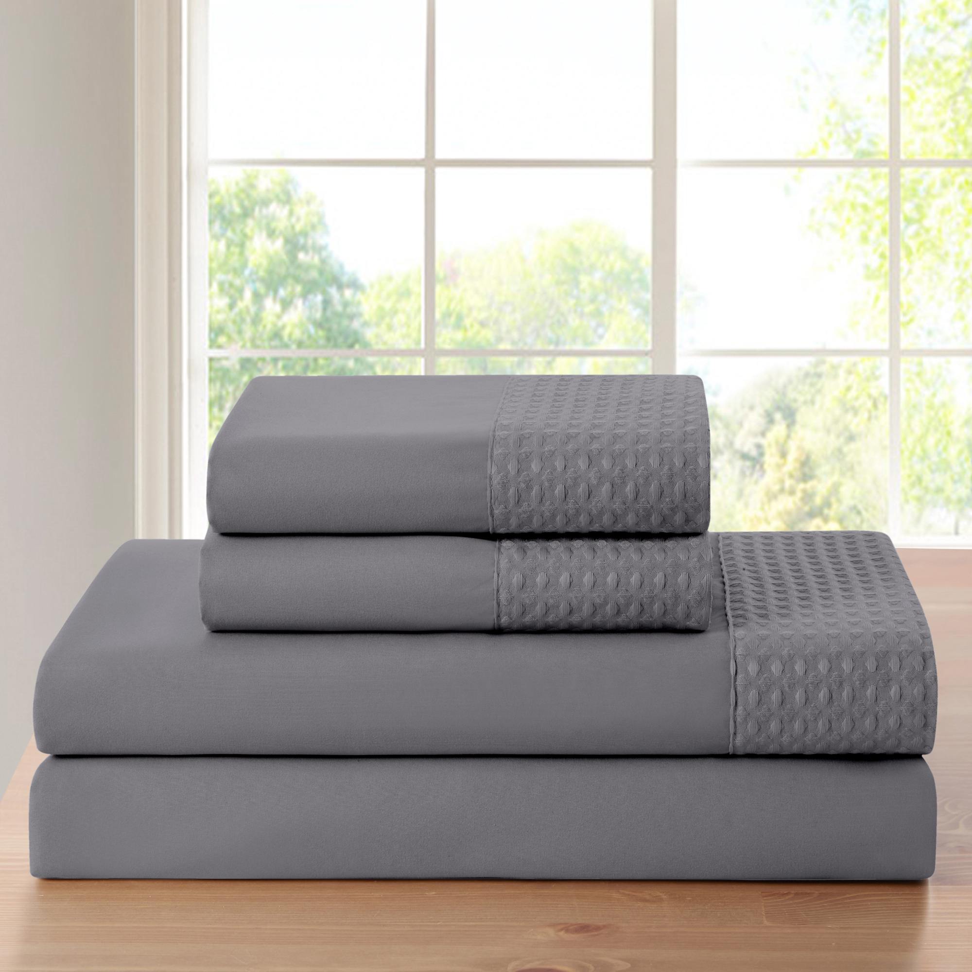 Bamboo 4 Piece 1800 Thread Count luxurious Ultra-soft Waffle Hem Sheet Set