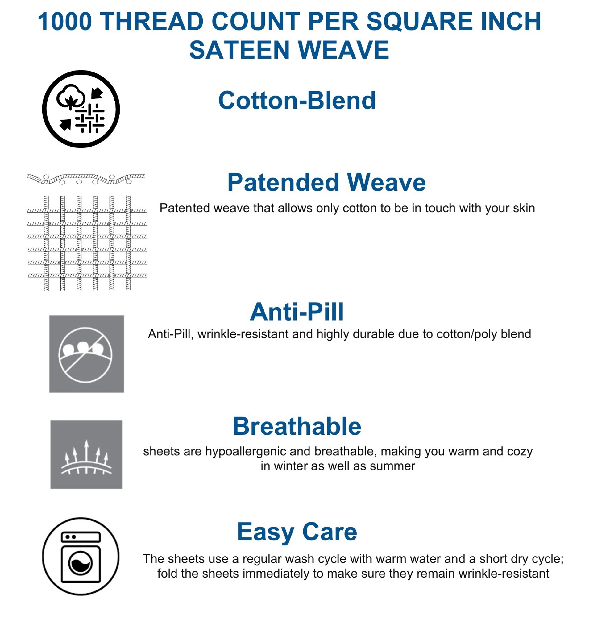 2- Our cotton blend sheets are conveniently machine washable, wrinkle resistant, and Anti - Pill