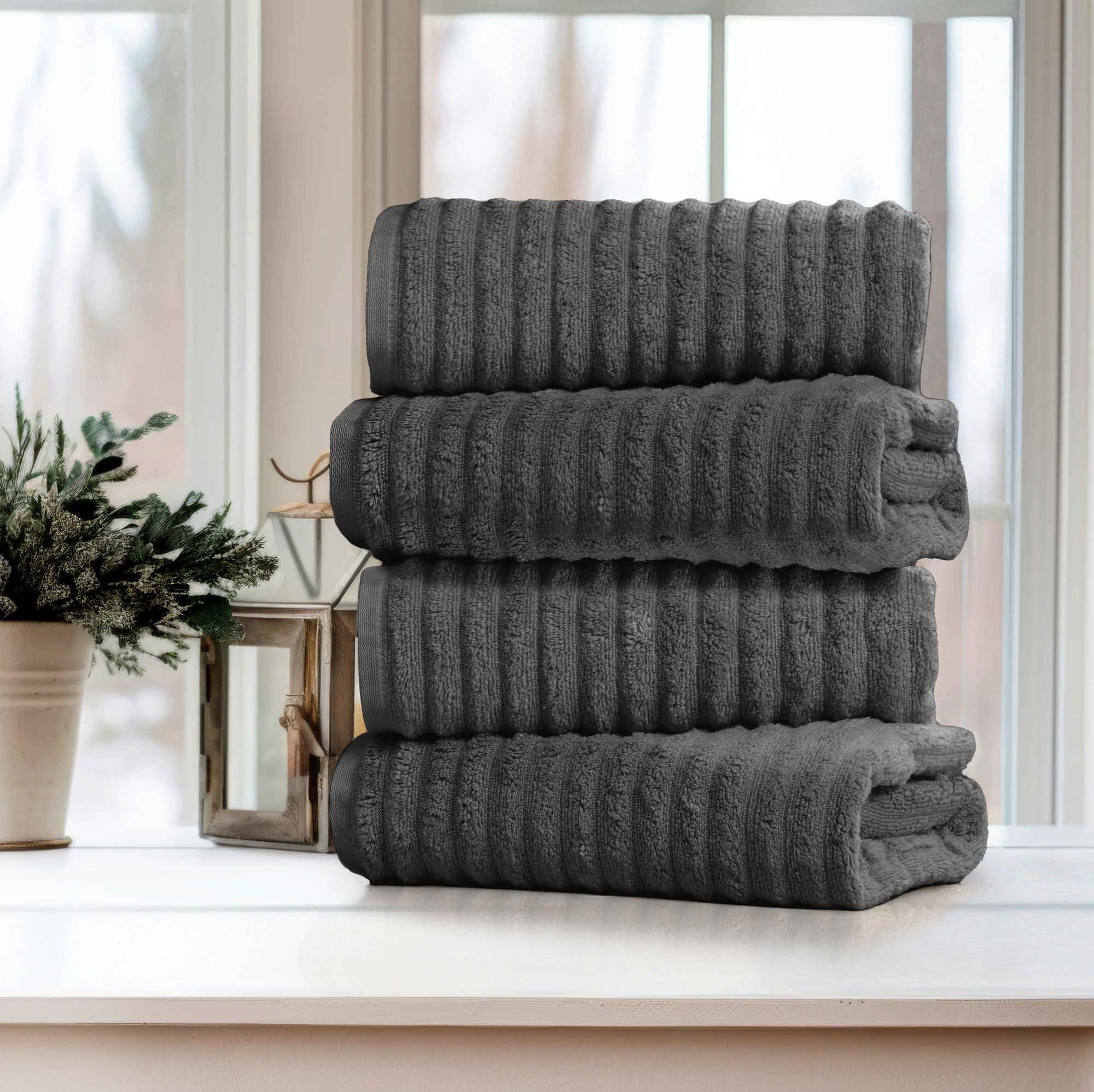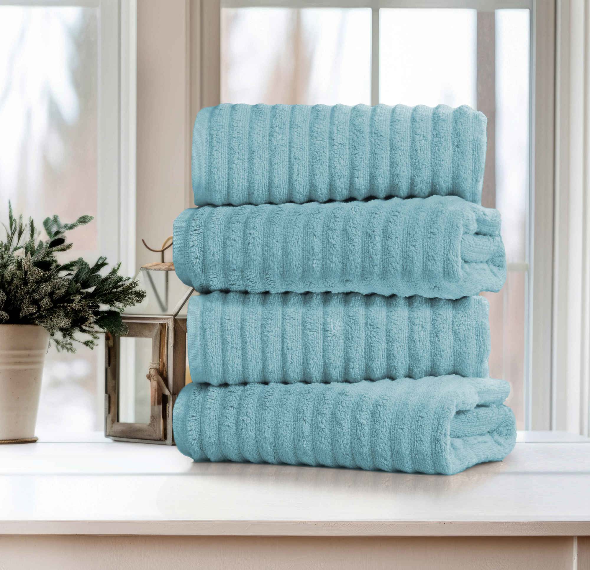 Bibb Home 4 Pack Ribbed Egyptian Cotton Bath Towel Set