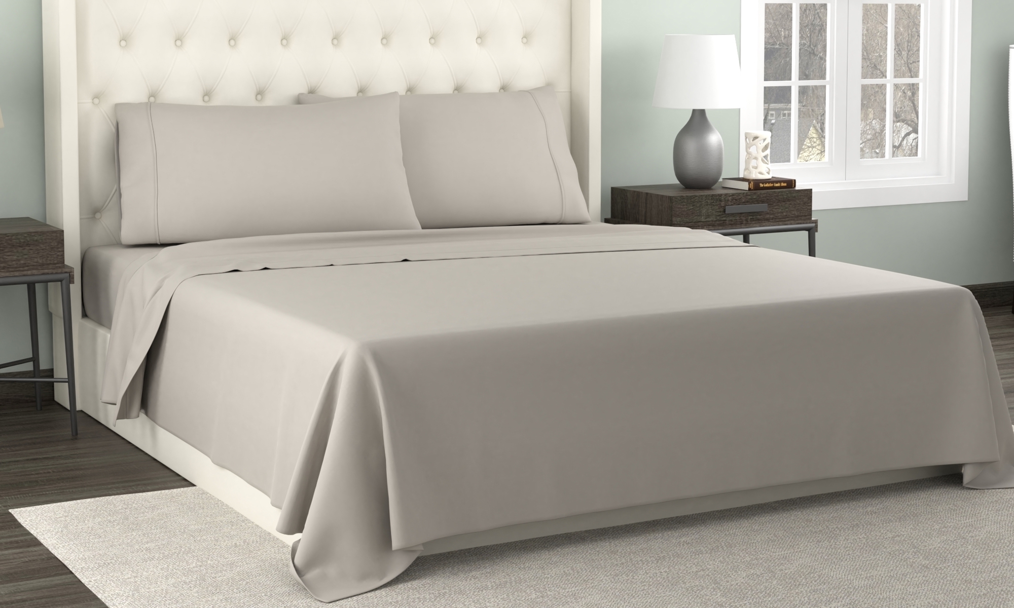 This 300 thread count organic-cotton percale sheet set by Kathy Ireland is machine-washable and provides classic style for your mattress and pillows. The fitted sheet has deep pockets to fit even the most luxurious of mattresses, while the cotton construction and percale weave make this solid sheet set an easy addition to your bedroom decor. More crisp and clean than silky soft, bedding with a thread count of 200-300 are appreciated for being breathable and durable. The sheet set is available in several color options to suit your personal style. With a percale weave, the threads go over and under in two perpendicular directions, creating a tighter weave that offers exceptional strength and long-lasting good looks. The overall result: a lightweight bed sheet with a cool and crisp feel.