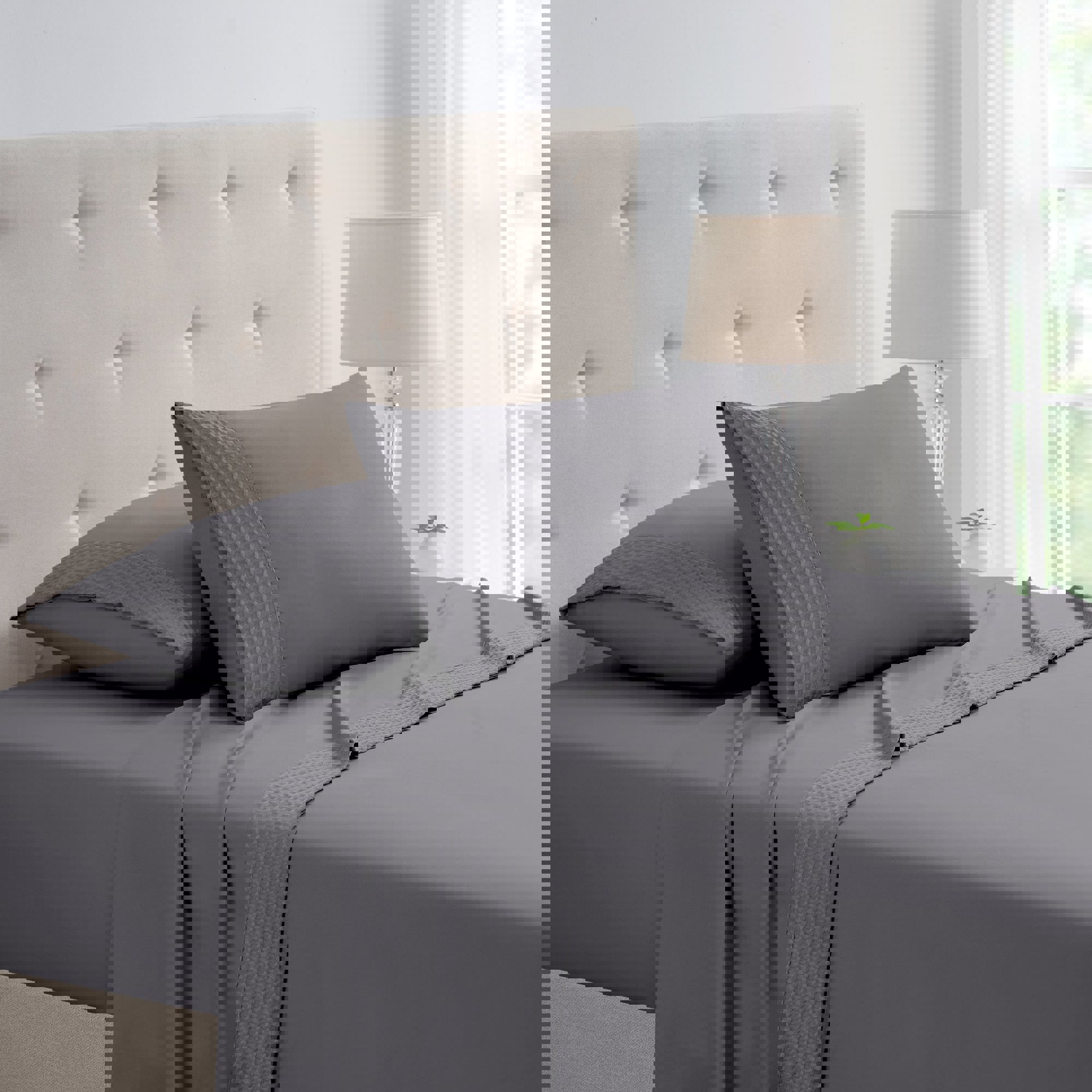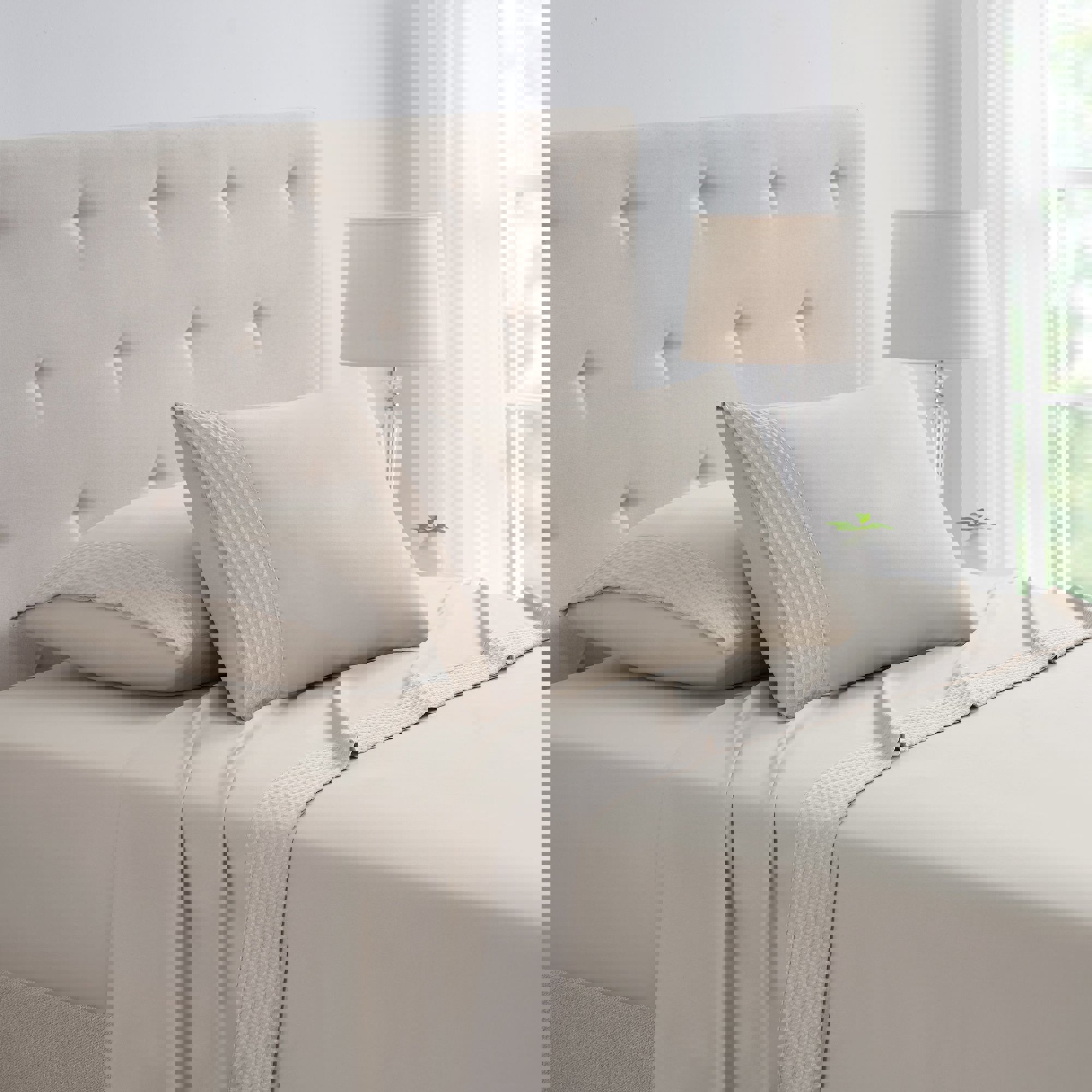 <p>Upgrade your bedroom with the elegant comfort of the Kathy Ireland Waffle Hem Sheet Set. This luxurious four-piece set is crafted from ultra-soft, breathable fabric designed to keep you cool and comfortable all night long. The fitted sheet features deep pockets to fit mattresses up to 16 inches, ensuring a secure and smooth fit. With a modern waffle hem accent, this set brings both style and comfort to any sleep space, perfect for every season and sleeper type.</p>