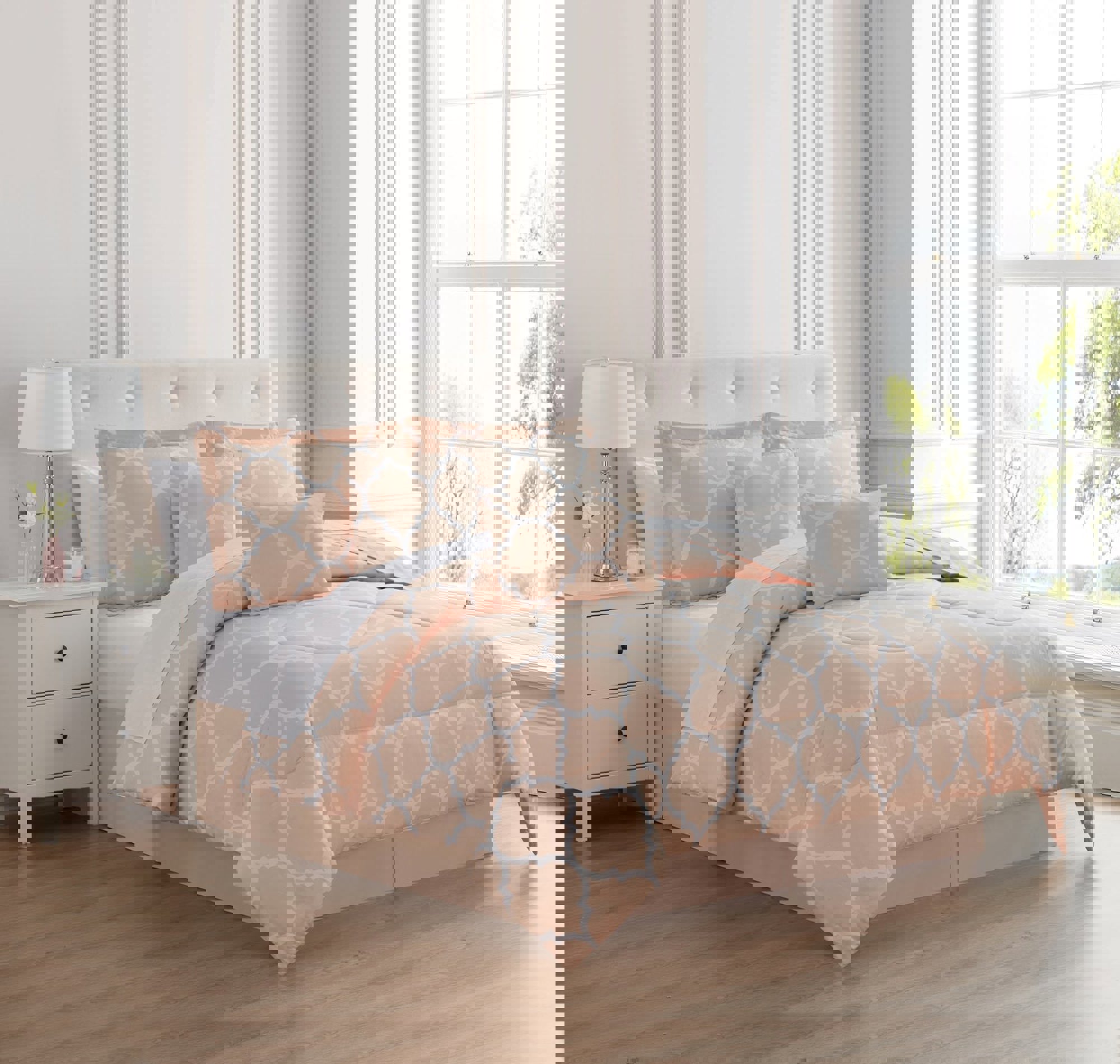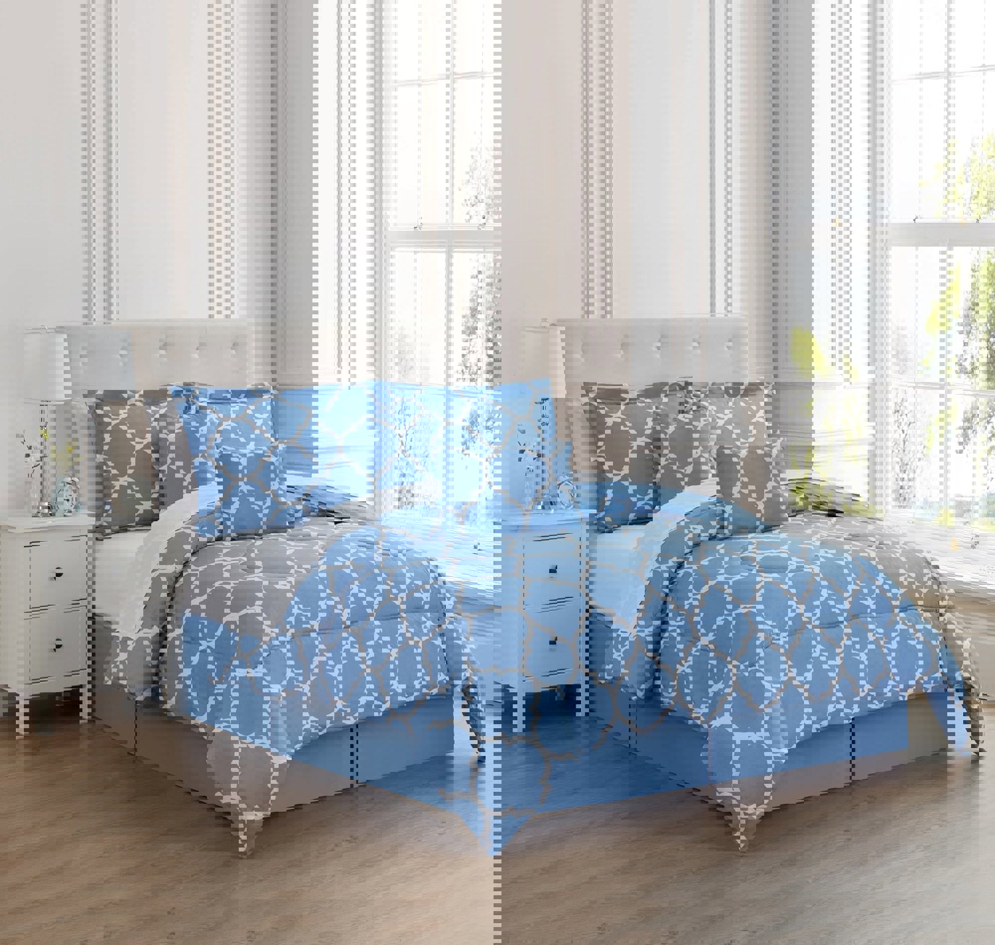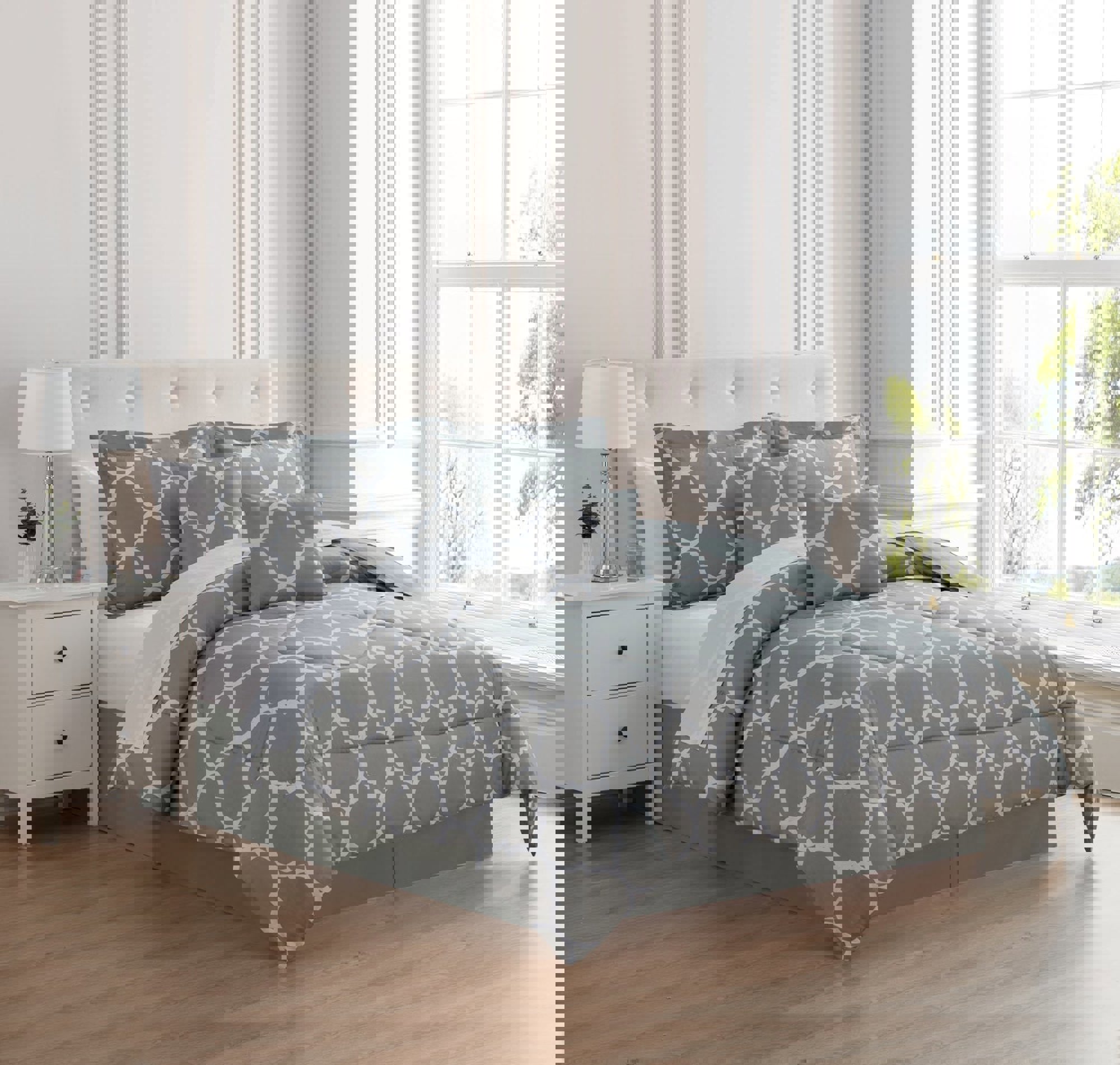 The Kathy Ireland Home 6-Piece Comforter Set is designed with your comfort in mind. Made of the finest imported double-brushed microfiber yarns, creating a new standard in softness and breath-ability, this 6-piece bedding set will make it incredibly hard to get out of bed in the morning. Our premium yarns are two times more durable than cotton, completely wrinkle free, and perfect for all seasons.