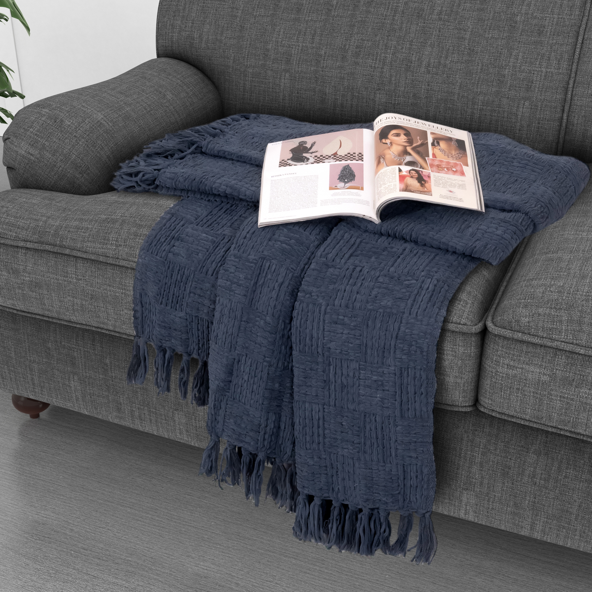 Kathy Ireland Oversized Chenille Polyester Fringed Basket Throw 50? X 70?