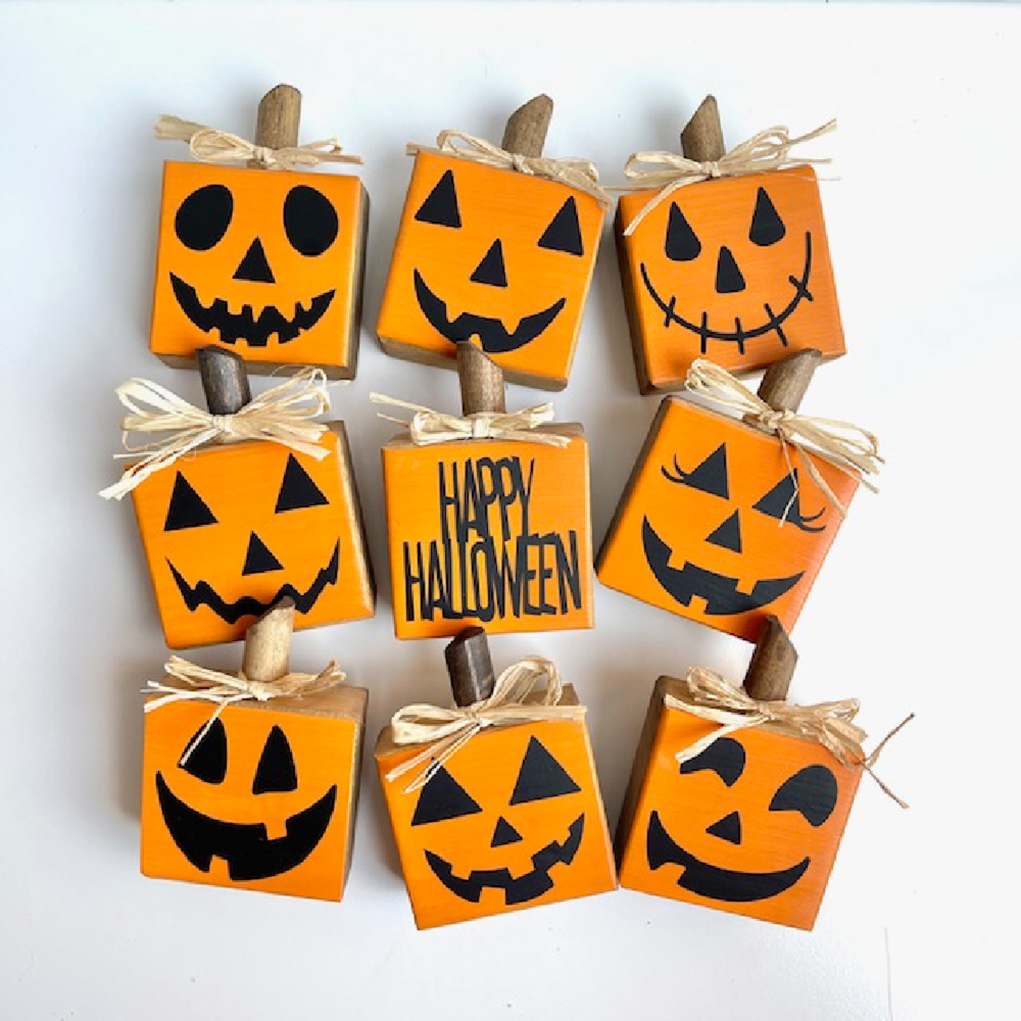Spruce up your home decor with these hand made pumpkin blocks. Place them on mantles, shelves, counters, or tiered trays. They will add that special touch to your Fall decorating theme.