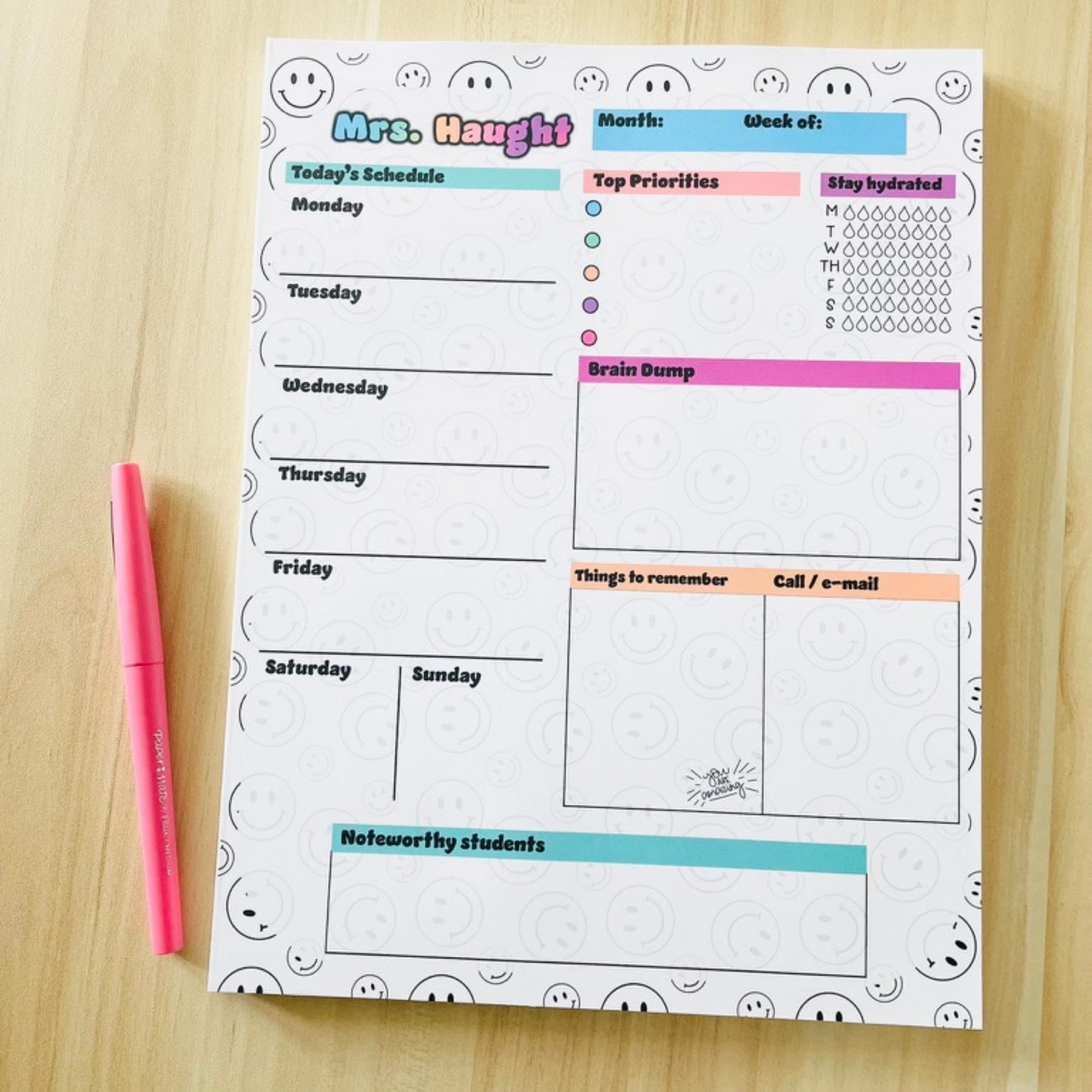 This week at a glance notepad is a teachers dream and has enough pages to last your teacher TWO SCHOOL YEARS! Your teacher will be able to jot down important notes that pop in their head throughout their busy day on this organized notepad. The bright colors will make your teacher smile as she walks by and sees it sitting on her desk. **With 75 pages, this beautiful notepad will last your teacher TWO full school years!