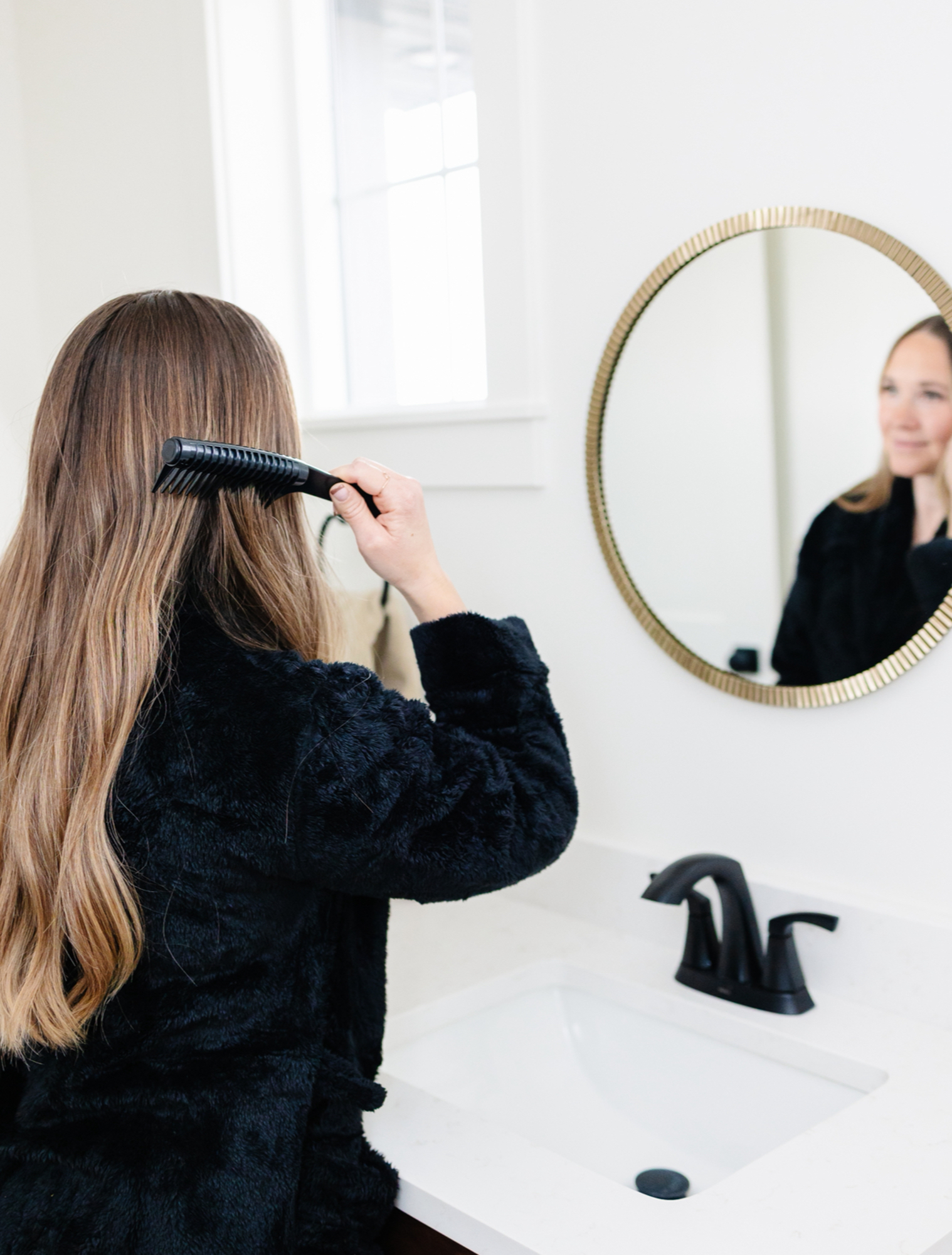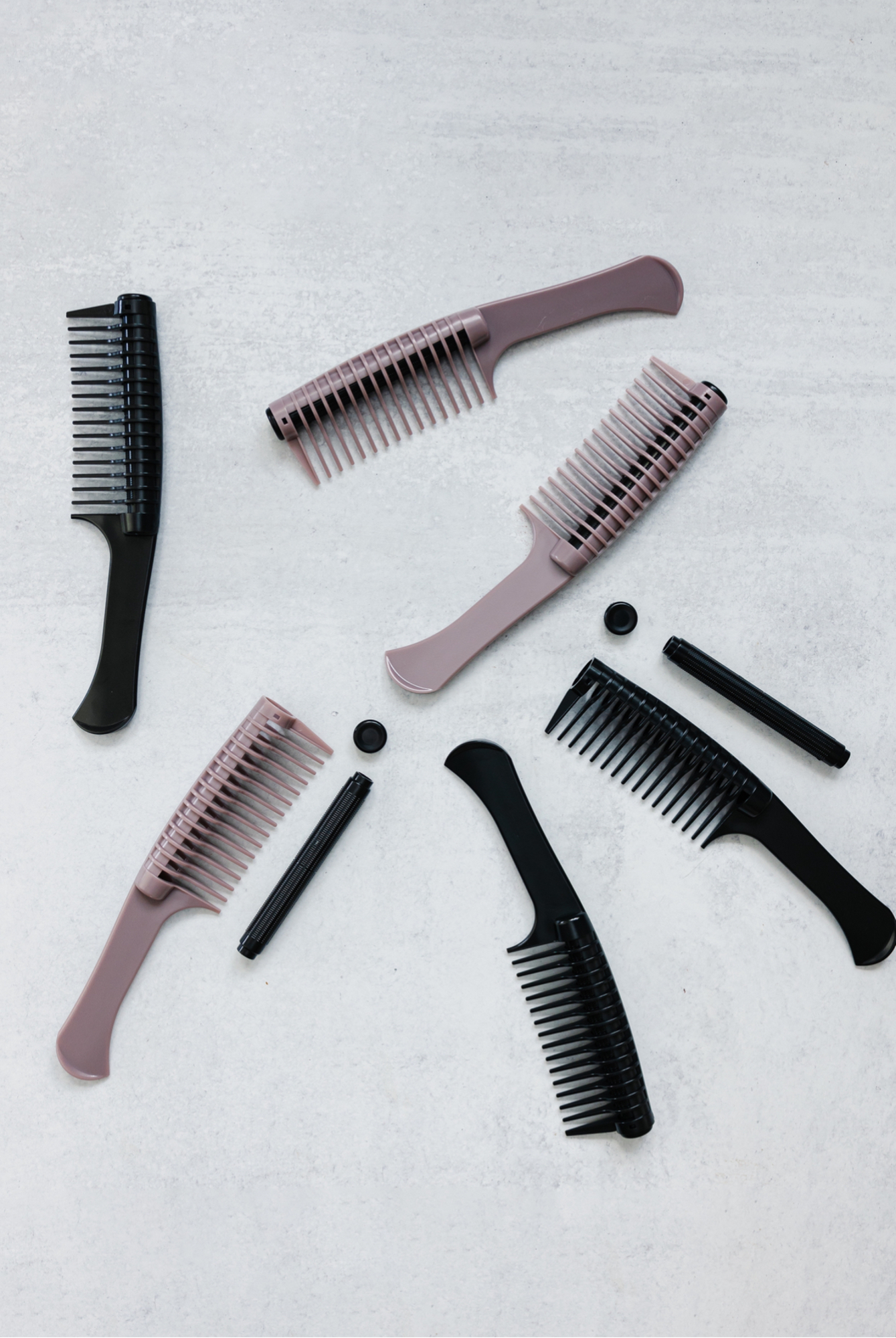 Has a rotating piece on the inside to help separate your hair as you comb. The top pops off so the center piece comes out for easy cleaning!