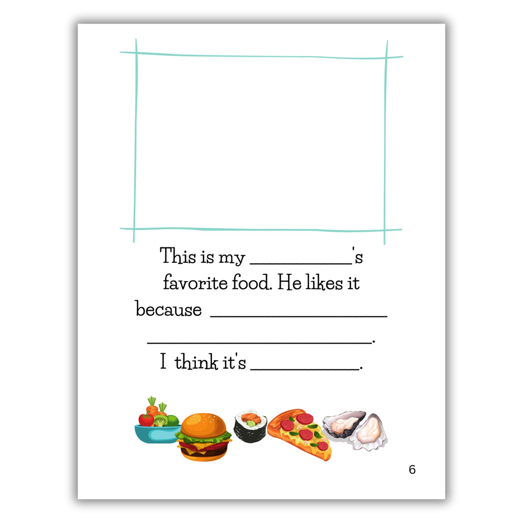 Best of all… we left the title page blank so your child can put in their own special name for Grandpa! We have even included the 12 most popular names as stickers to choose from. If none of those work, your child can draw their own special name in the blank!