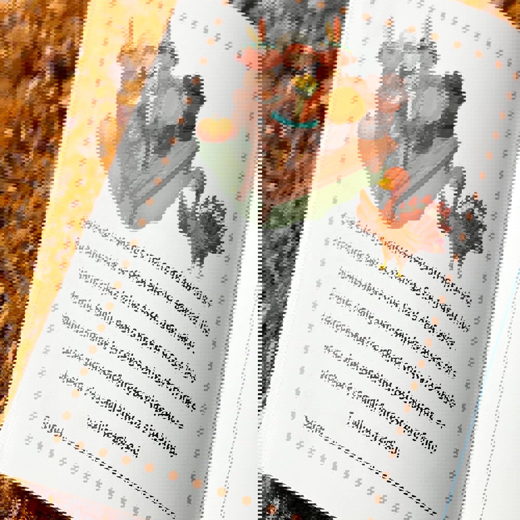 What a beautiful little story to teach how it really was that first Thanksgiving. This story lets your child be the star while teaching them to be grateful for who and what they have in their lives. Awesome to have at the Thanksgiving meal as a guided activity to help celebrate the holiday.