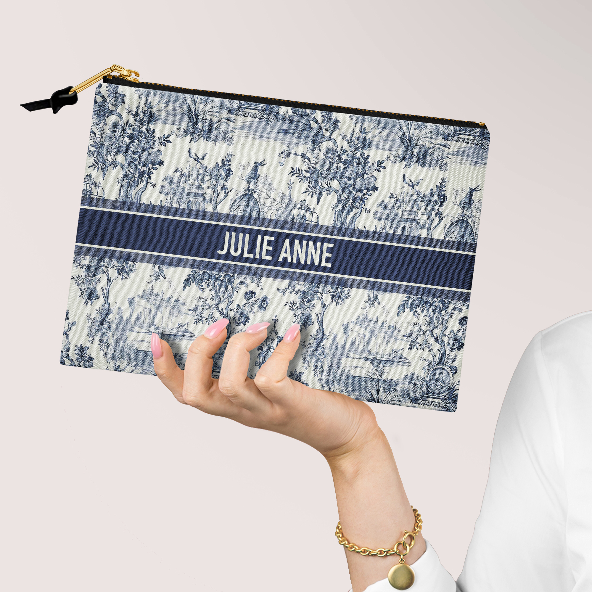 Custom Accessory Zip Bag, Travel Pouch, Makeup Bag, Toile Designer Stripe