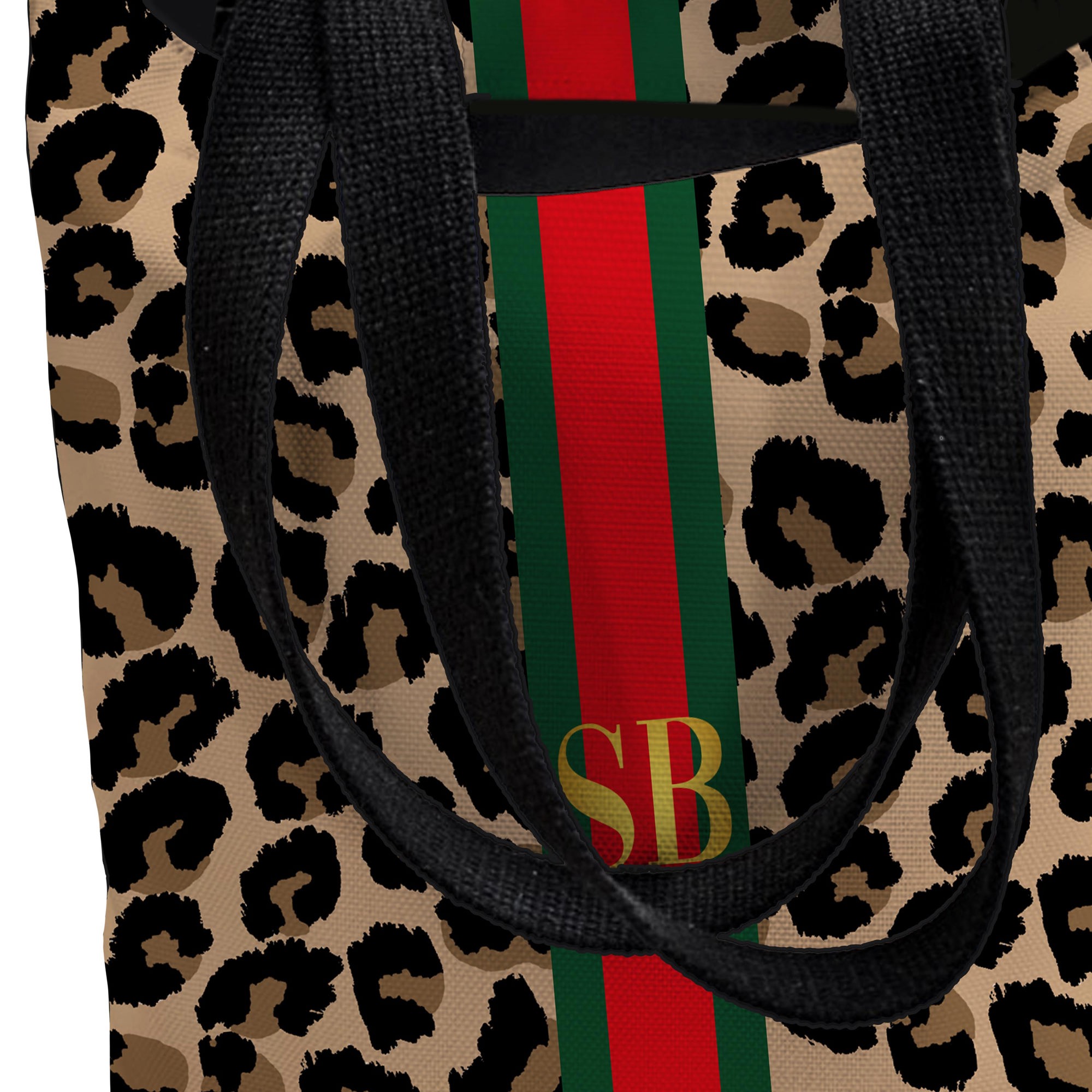 Personalized Leopard Print Tote Bag, Stripes, Custom Initials