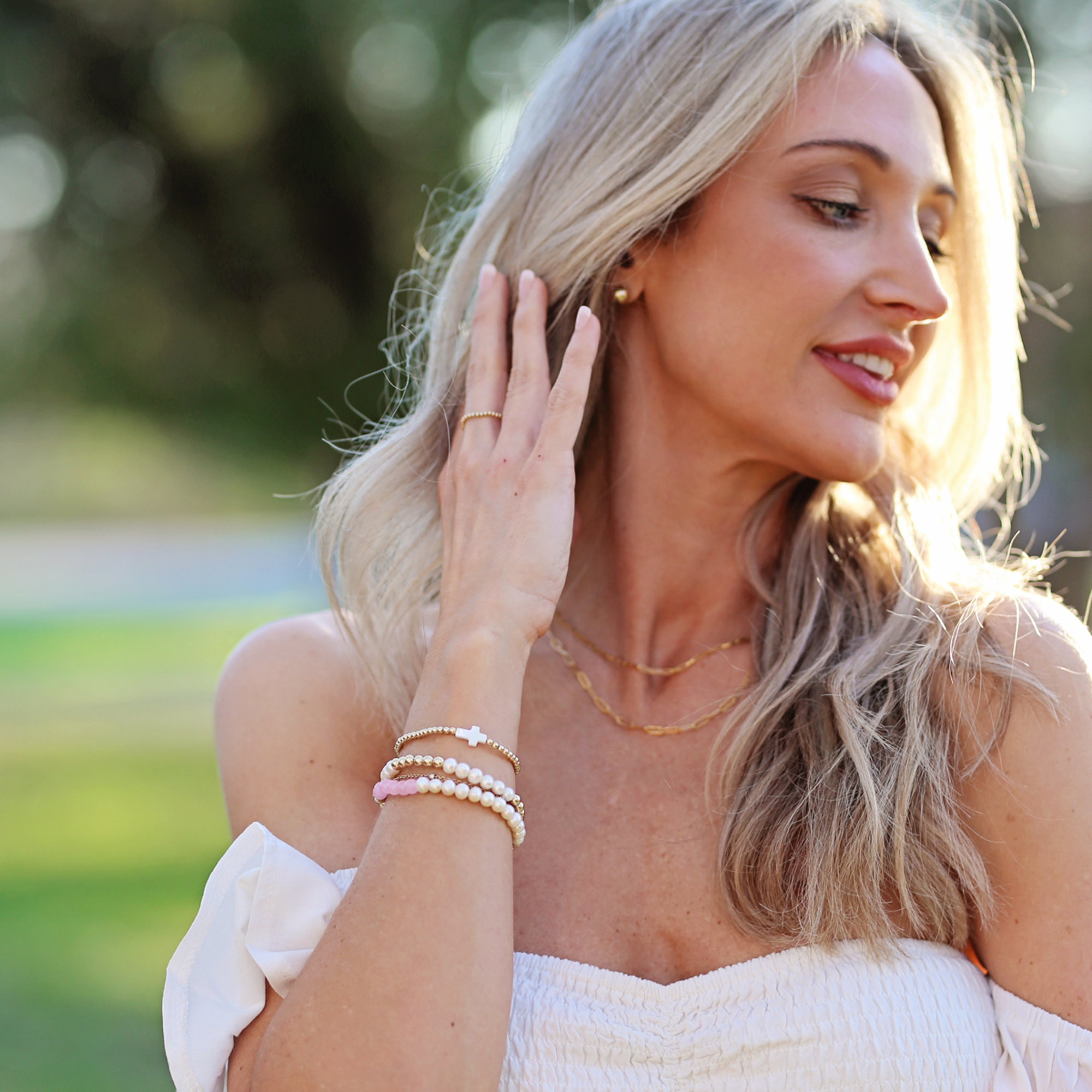 The Faith, 14k Gold Filled and Mother of Pearl Cross Stretch Bracelet combines elegance and grace with ease. Crafted with 3mm 14k gold-filled beads and a luminous Mother of Pearl cross bead, this bracelet is designed on a stretch band for comfortable, all-day wear. Finished with a 14k gold-filled signature closure bead, it’s secure, stylish, and easy to slip on and off.